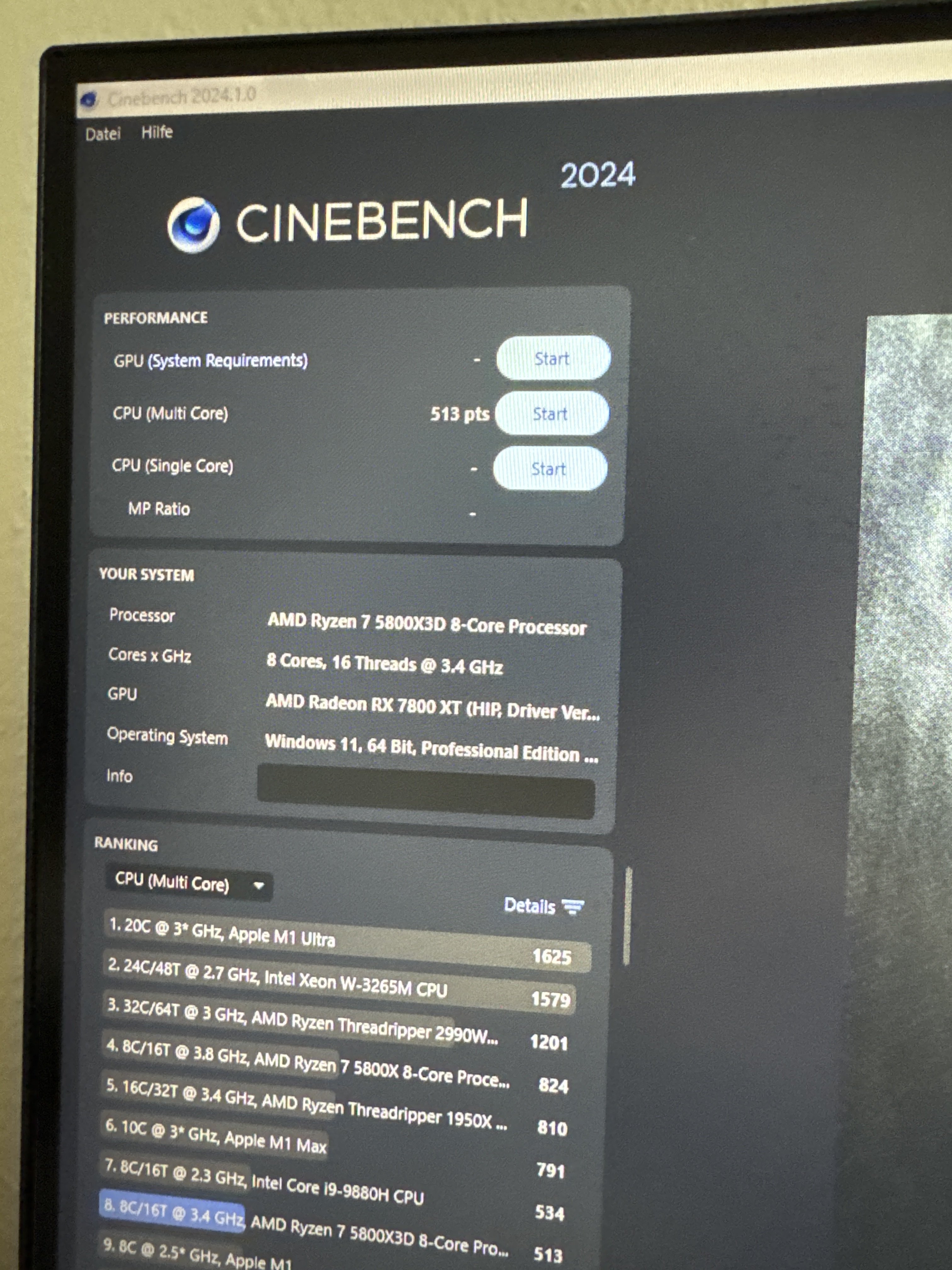 - Prozessor (CPU):Ryzen 7 5800x3d