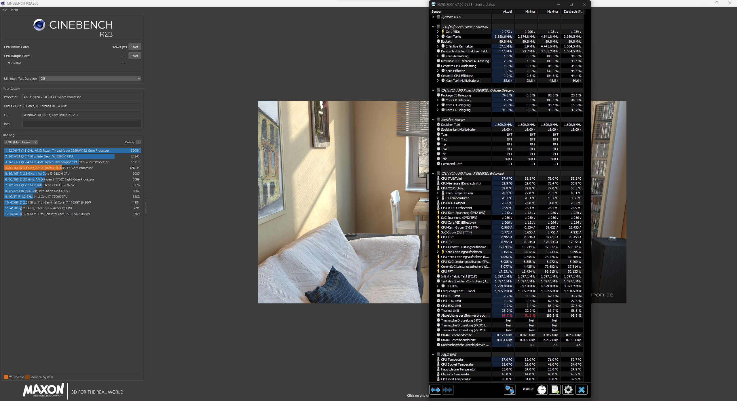 RAM ist dem R23 egal... -10 hilft dabei, die Temperaturen etwas niedriger zu halten. Dein Score ist aber auch nicht optimal. Ich betreibe meinen 5800X3D mit 90W PPT und komme Multicore auf 14.225 Punkte. -30 CO. Wobei ich das mal anpassen muss, da ich definitiv minimales Core Stretching habe.Daggy820 schrieb:Ich muss aber dazu sagen das ich die CPU mit einem Negativ Offset von -10 betreibe und 3733 CL16 Ram habe, vielleicht deshalb minimal höhere Werte.