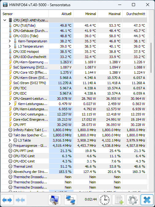 Unter Last bei der Battlefield 6 Beta lag ich bei ca 82 Grad. Die GPU hingegen nur bei 25