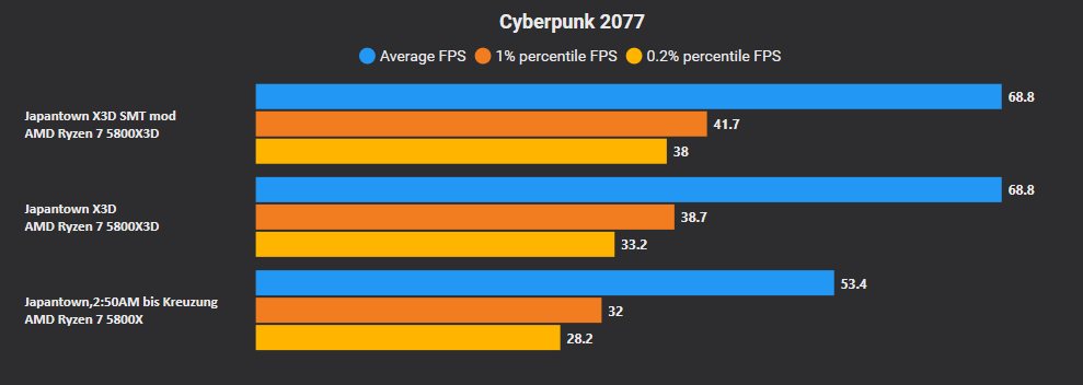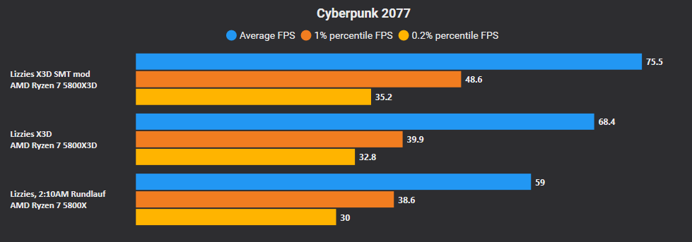 Hier hatte ich auch den SMT mod probiert, der an manchen Stellen noch was rausholen kann, woanders nichts macht. Beim 5800X hatte er keine Auswirkungen.