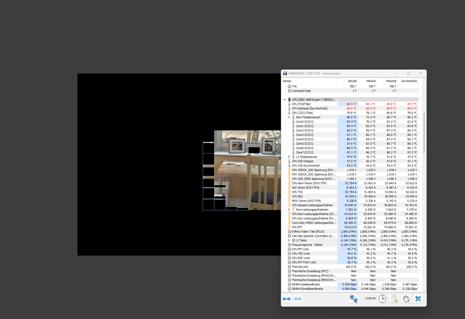 Am besten so weit aufzeihen das man alle Werte sieht. Auslastungs Werte währen ja auch interessant. Und dann auch noch mal gerne einen Screenshot von allen Werten im Idle auf dem Desktop.