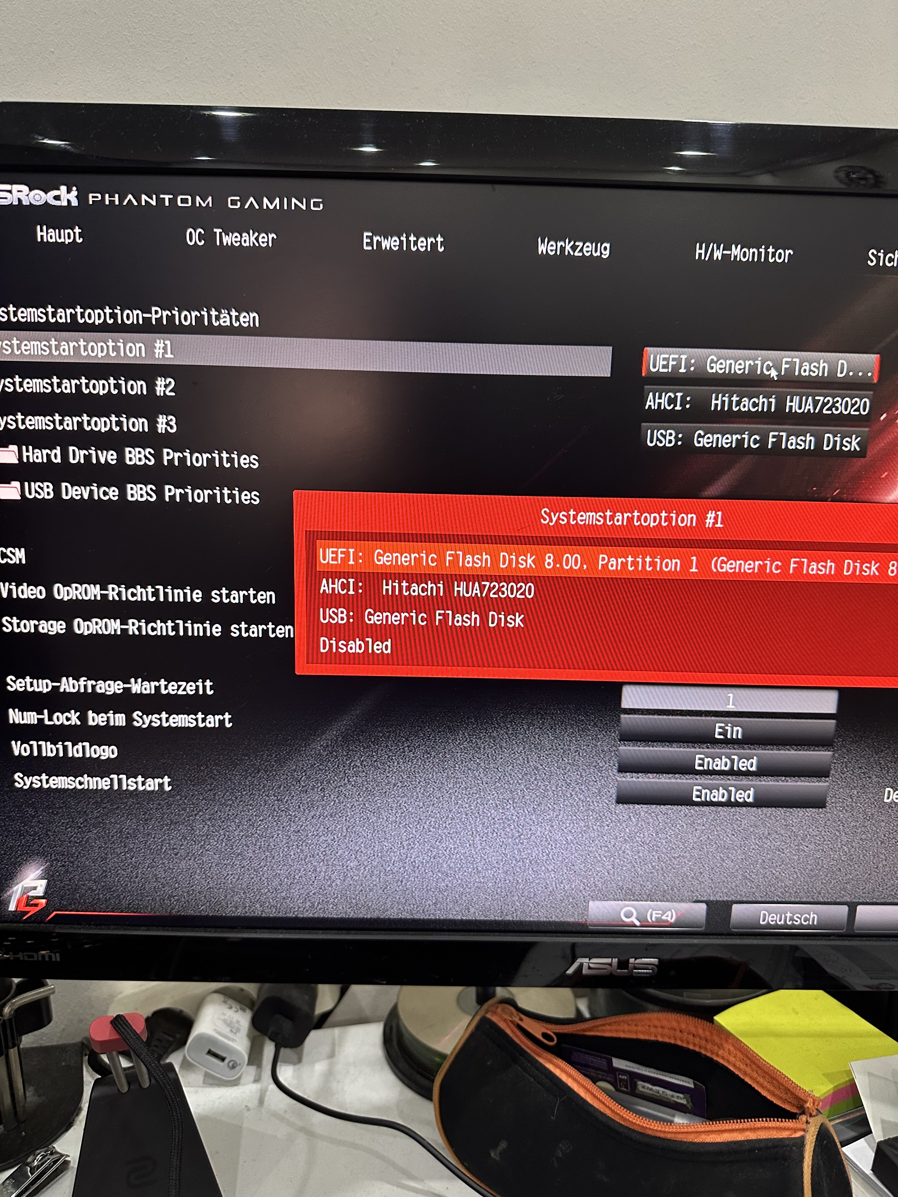 Wie wird deine Samsung bei den Boot devices angeizeigt?