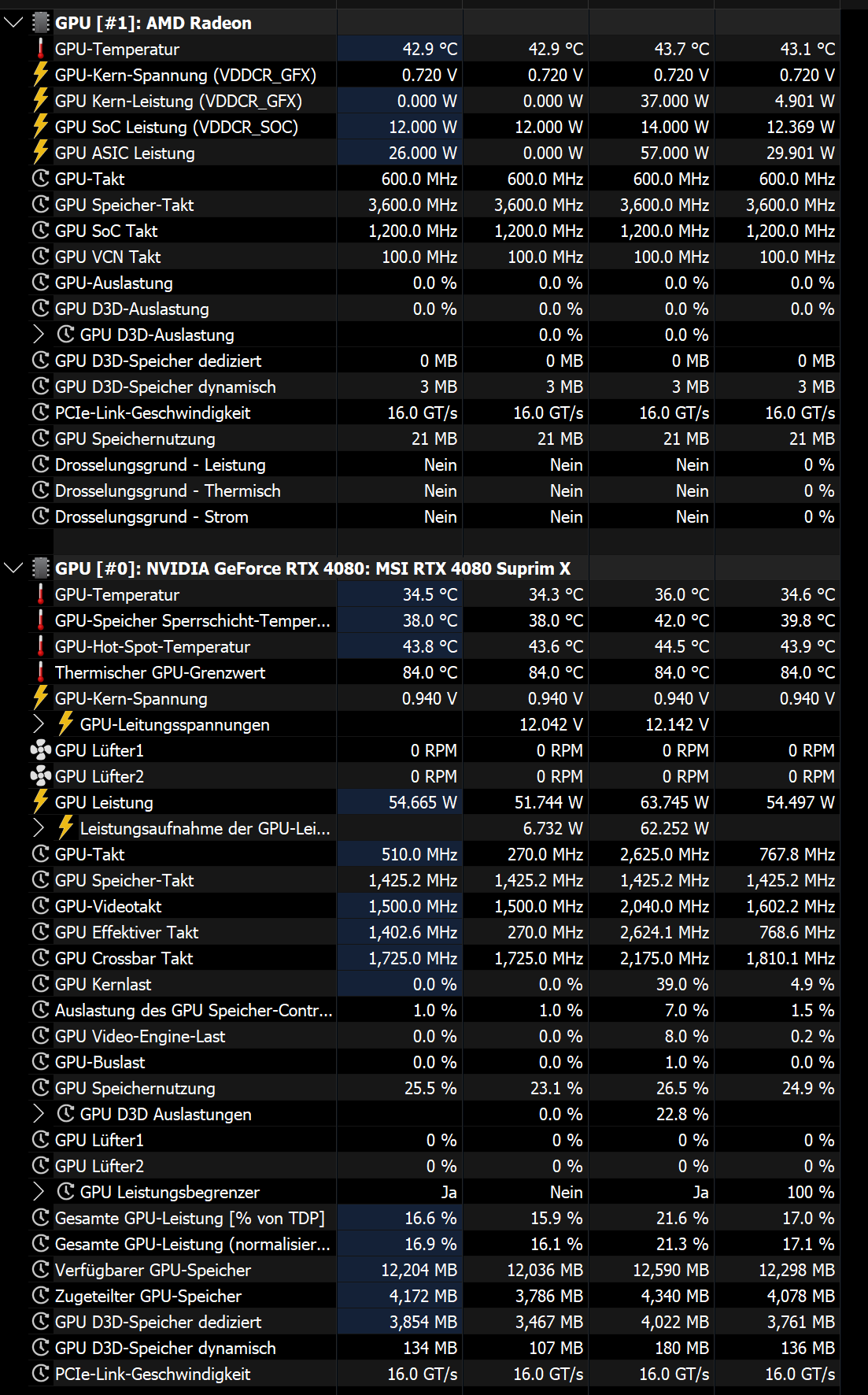 Außerdem sieht man auf dem Bild 2 PCIe Erweiterungskarten. Das eine ist wohl deine 4080 (Vertikal eingebaut) und was steckt dann im Slot? Noch eine Graka oder was anderes?