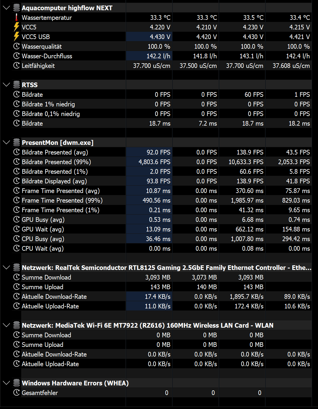 Generell finde ich die Aussage "Kühlmittel Temp 34 C° ohne last" interessant. Wie bekommt man es hin, dass die Wassertemp ohne Last so hoch ist? Sollte doch vielleicht ein Delta von 2° bis 3° zur Raumluft haben...