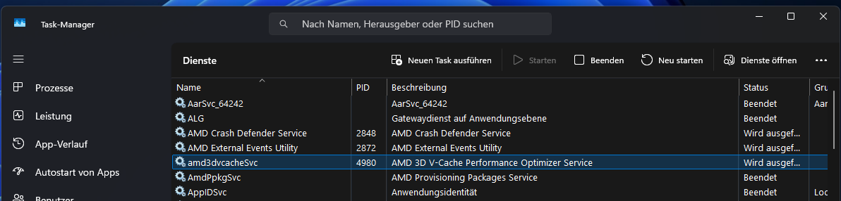 Bei CPUs mit nur einem CCD (einem Core Complex Die) ist der Service weniger komplex aktiviert, da keine CCD-wechselnde Logik erforderlich ist (im Gegensatz zu CPUs mit zwei CCDs wie dem Ryzen 9 7950X3D, wo der Service priorisiert, welcher CCD den 3D-Cache nutzt).