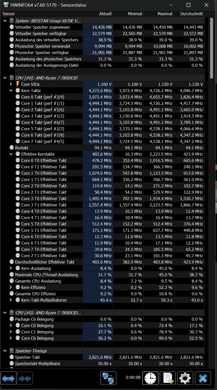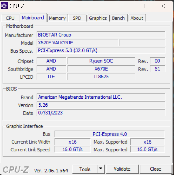 - Mainboard: X670E Biostar Valkyrie, Bios ist aktuell