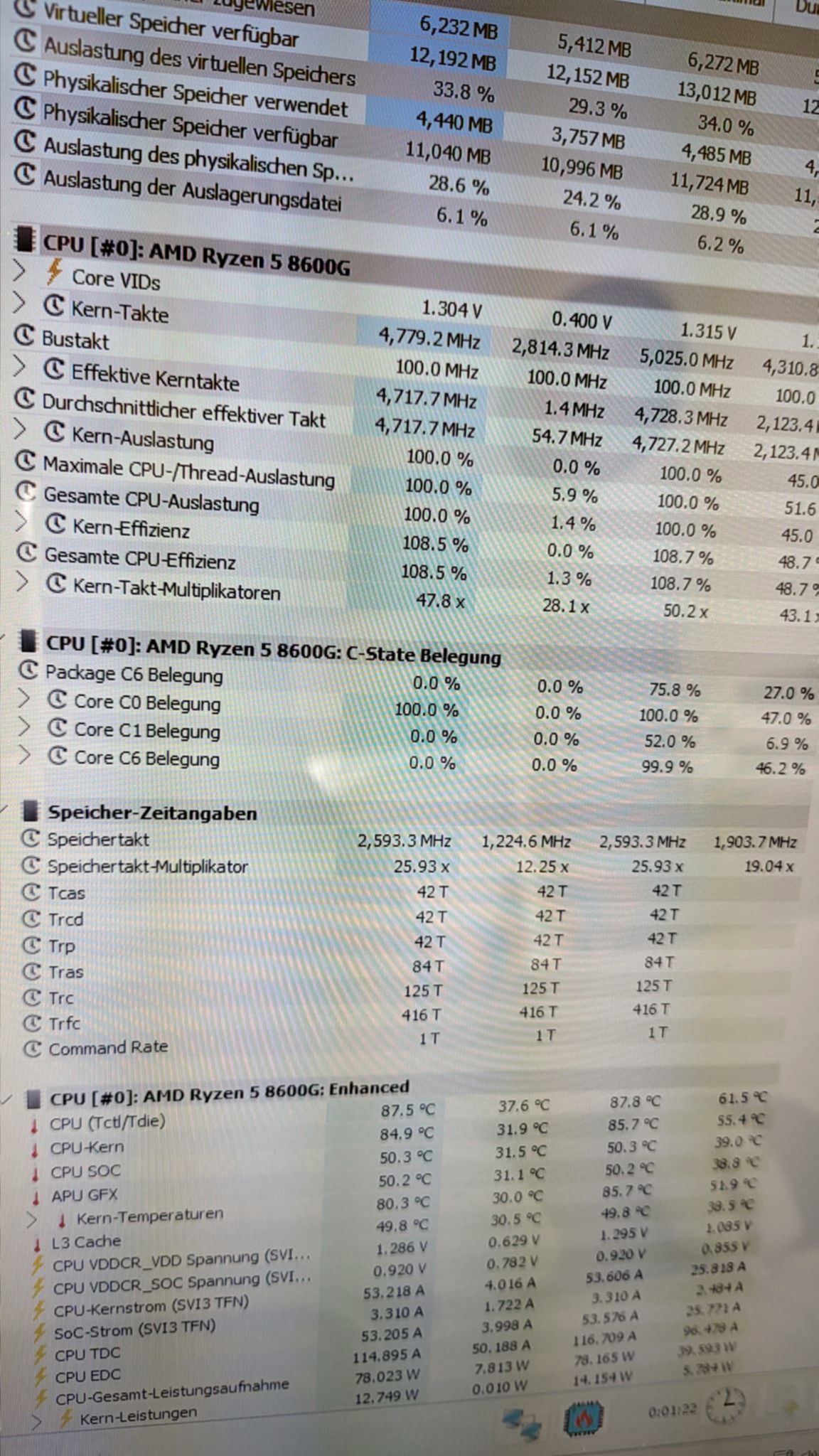 ja das mit dem screenhot mache ich gleich, der pc ist halt nur noch nicht mit dem internet configuriert da muss ich hin und her switchen und hwinfo nutze ich sonst nicht. Den 8600G habe ich gebraucht gekauft, sieht optisch in Ordnung aus und habe eine Rechnugn dazu