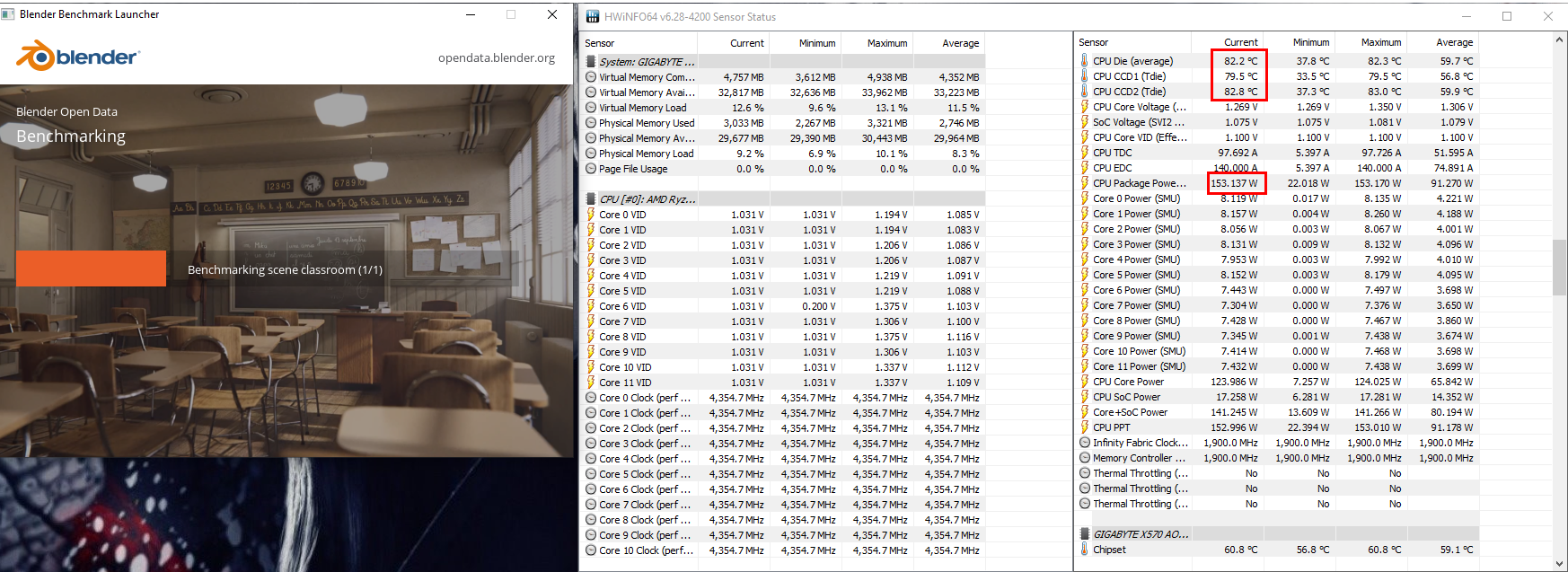 Mit @4350MHz wird die CPU dann wärmer und verbraucht mehr, als beim CB20 mit @4.4GHz.