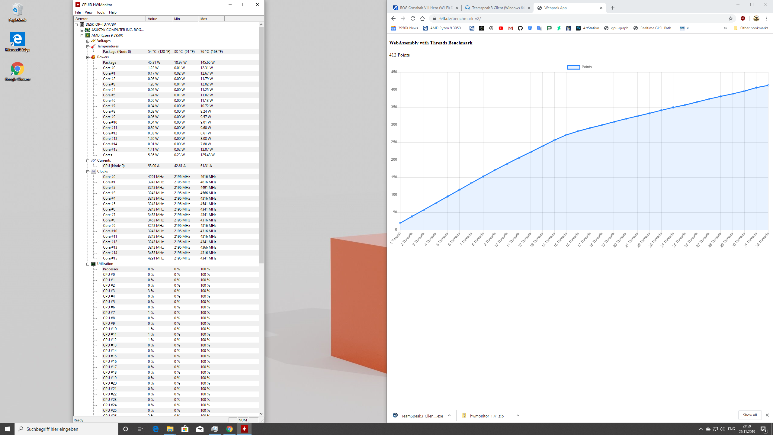 Habe mal mein ersten Test mit meinem Benchmark ohne große Einstellungen am BIOS gemacht. mein alter i7 4790K is da bei 96 Punkten gewesen. In Firefox bekommt man mehr Punkte aber ich teste immer chrome.