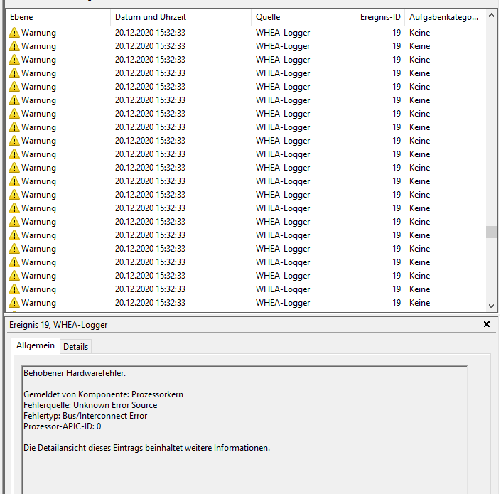 alles schon probiert auf unseren beiden Maschinen. Ob XMP an oder aus ist, ist den WHEA Errors egal 😄. Alles zum Thema OC, UV, XMP, Overdrive usw usw. ist deaktiviert. Hilft aber nur bei den wenigsten. Ich hoffe einfach, dass es MSI oder AMD in den nächsten Wochen mit einem neuen Bios oder so auf die Reihe bekommt, obwohl ASUS ja auch oft betroffen sind. Laut einigen Usern anderer Foren, soll Gigabyte komischerweise relativ wenig betroffen sein, die bringen aber auch alle 2 Tage ein neues Bios raus