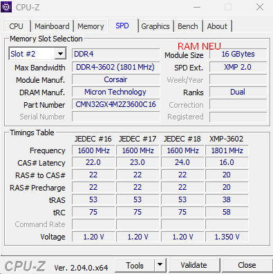 Die Alten RAM-Module sind Single Rank und die Neuen RAM-Module sind Dual Rank. Screenshots vom alten und neuen RAM aus CPU-Z habe ich beigepackt. VSoC habe ich wieder auf AUTO gestellt.