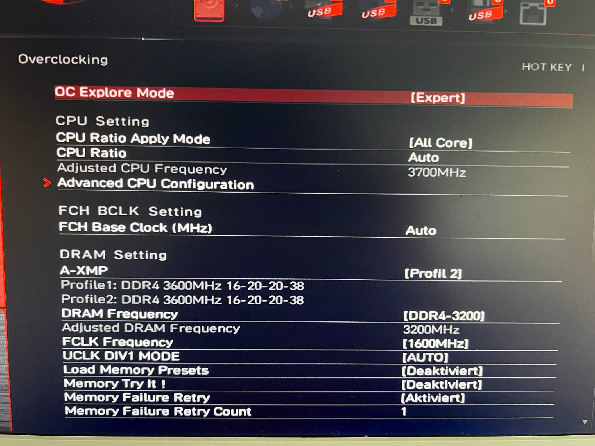 Mir ist gerade in neuer fehler aufgefallen. Wenn ich Datein auf USB-Geräte kopieren nach kurzer Zeit trennt er alle USB Speichergeräte und erkennt sie nach ca. 1 Sekunde wieder. Egal ob Mit XMP (3600MHz) oder Ohne XMP (3200MHz)