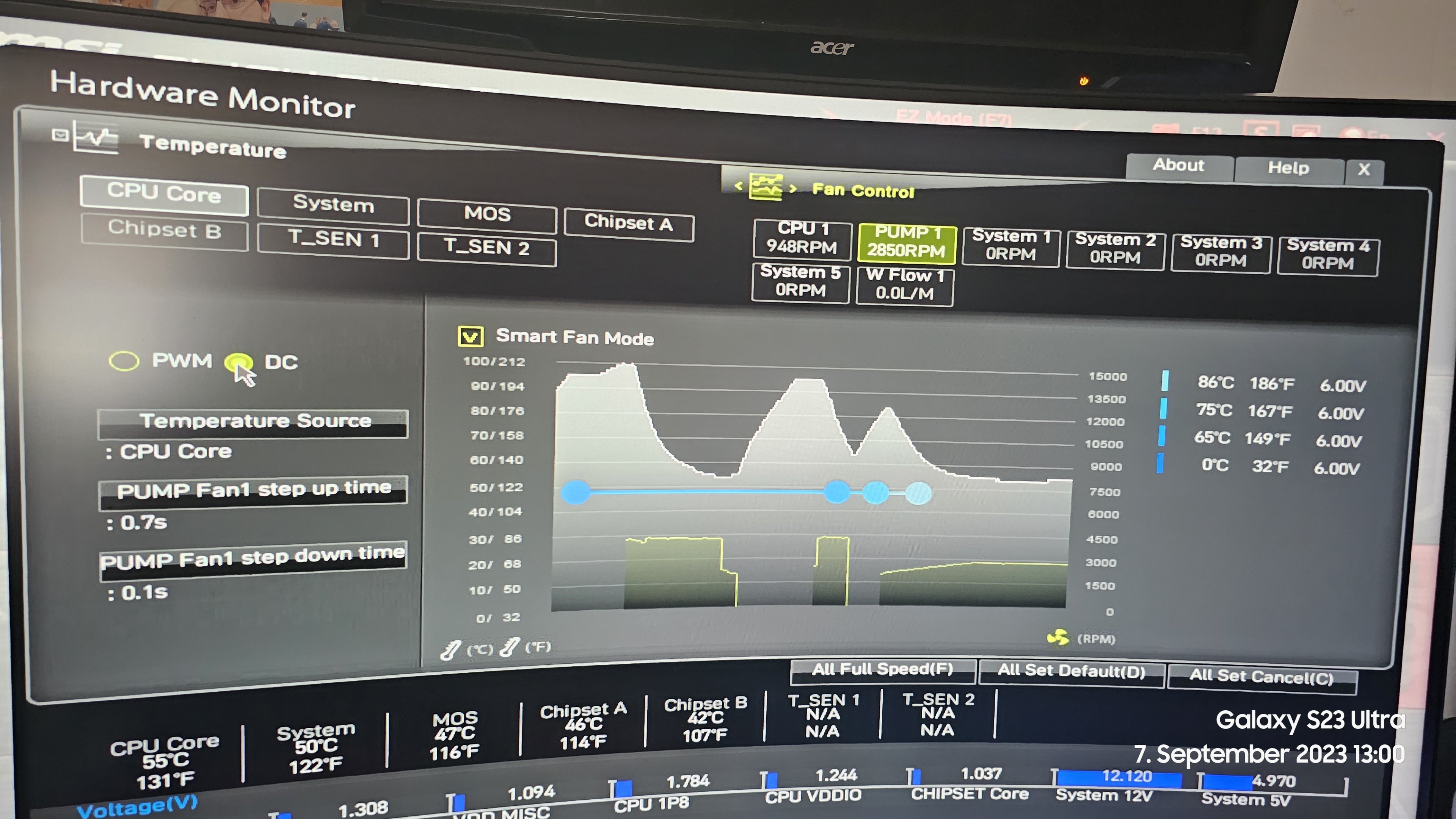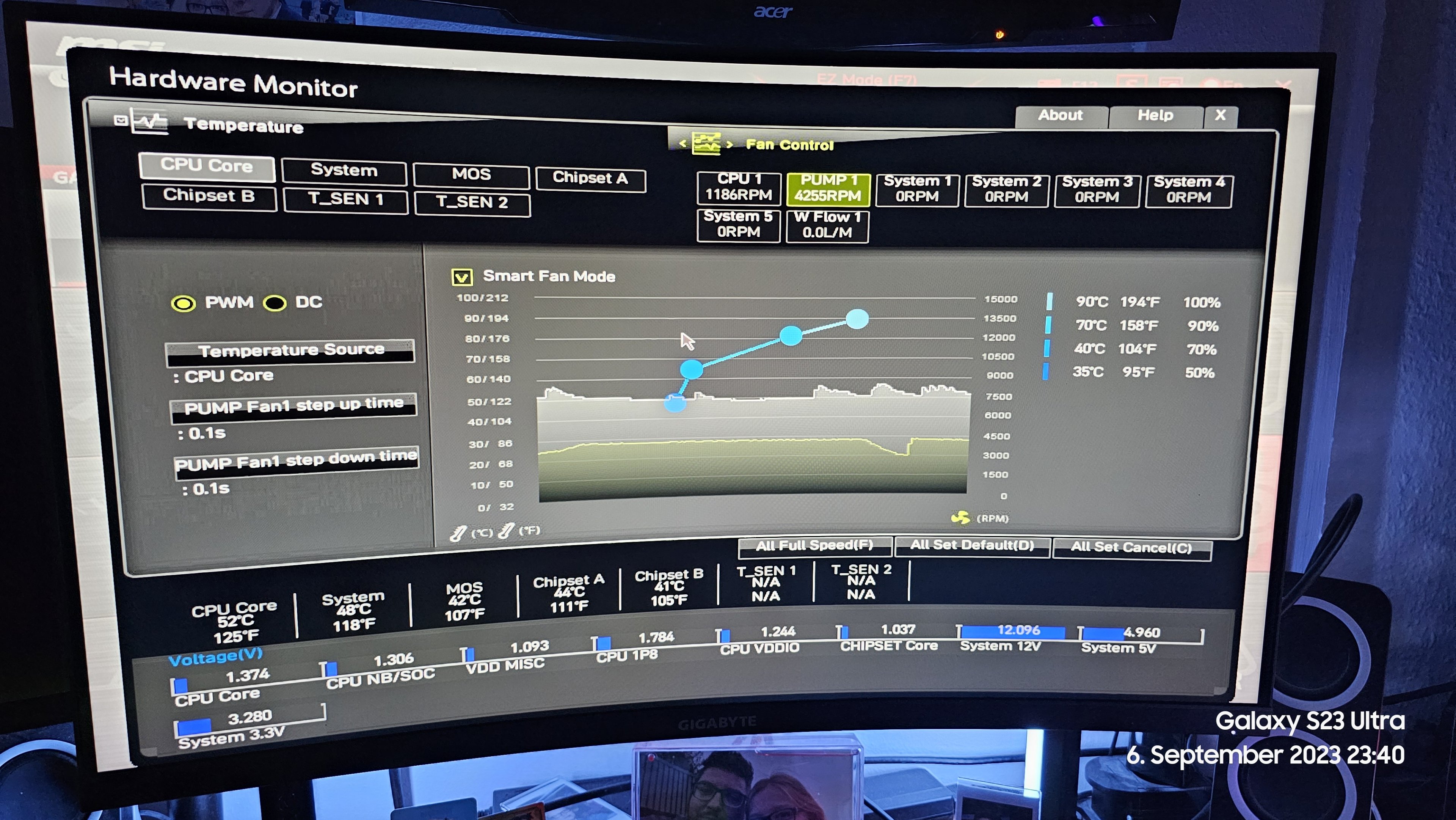 Hey guten Morgen zusammen, ich hab es jetzt mal eingestellt und sogar das Fiepen/pfeifen vom Radiator ist nun weg. Oben habt Ihr ja den Standard gesehen wie es eingestellt war, nun habe ich CPU/PUMP so eingestellt: