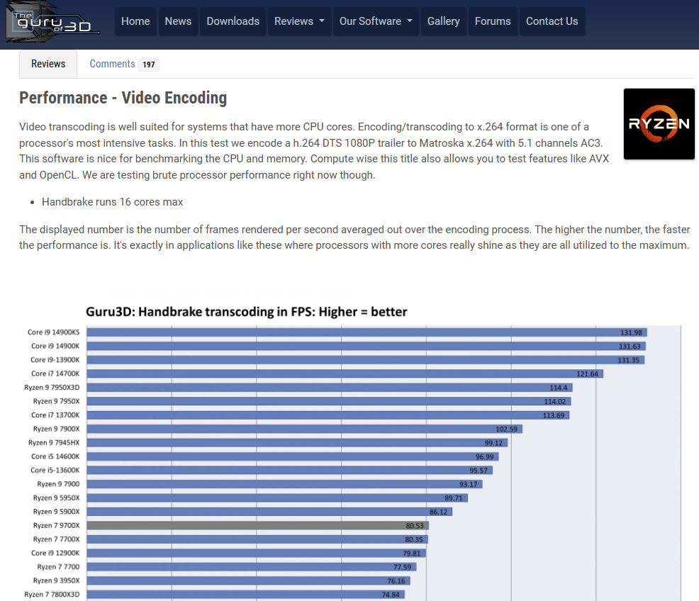 +42% in handbrake vs 14700k?