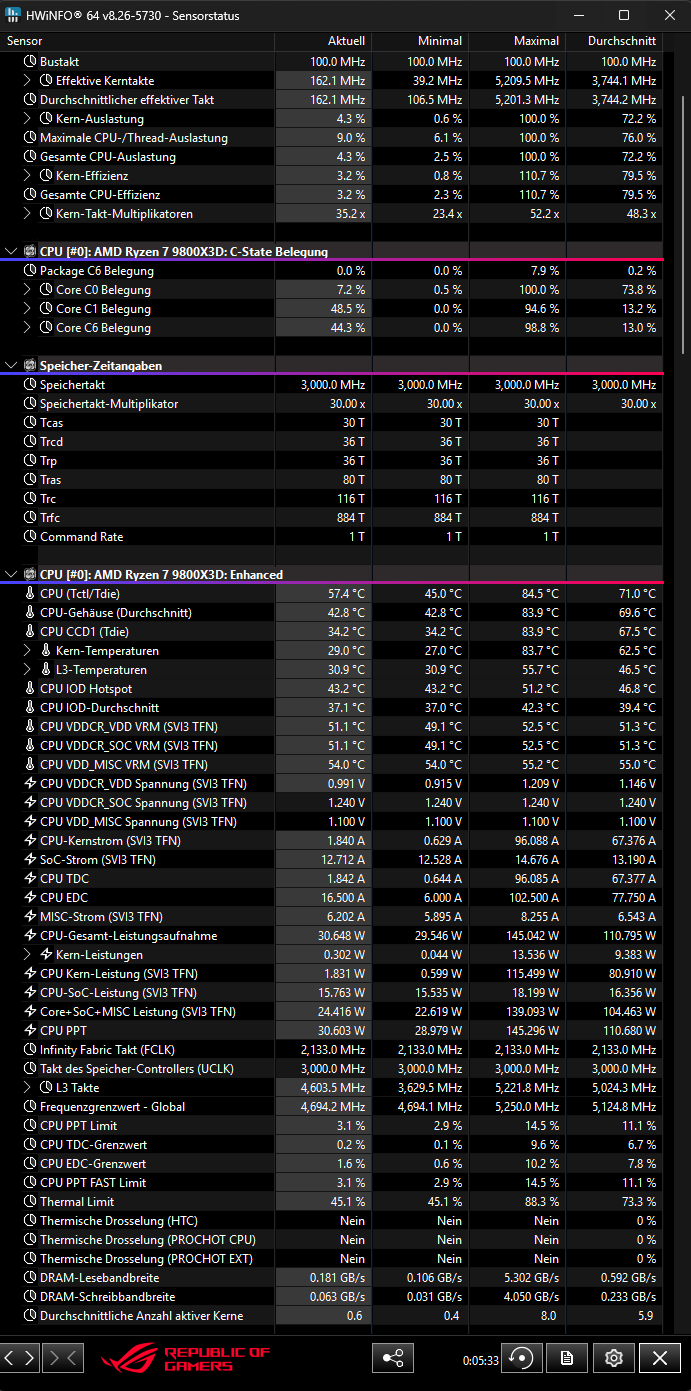 Hier ein Screenshot nach Cooldown, 2 minuten ca laufen lassen und dann Prime starten. Nach 15 Min Prime: