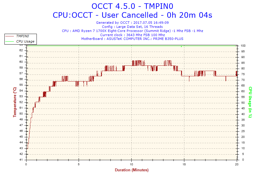nach 20 min hab ich Occt abgebrochen , Temp ist max . auf 60 Grad raufgegangen