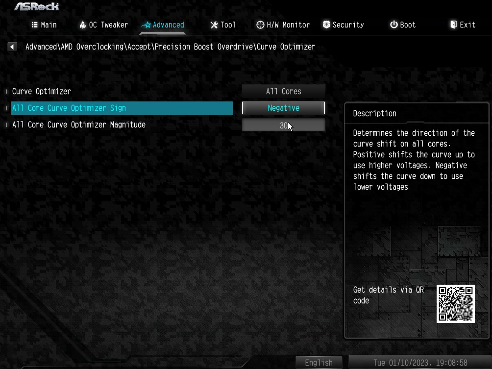 Profil geladen, AMD-OC, PBO rein, Advanced und tataaa....Curve Optimizer ist da.
