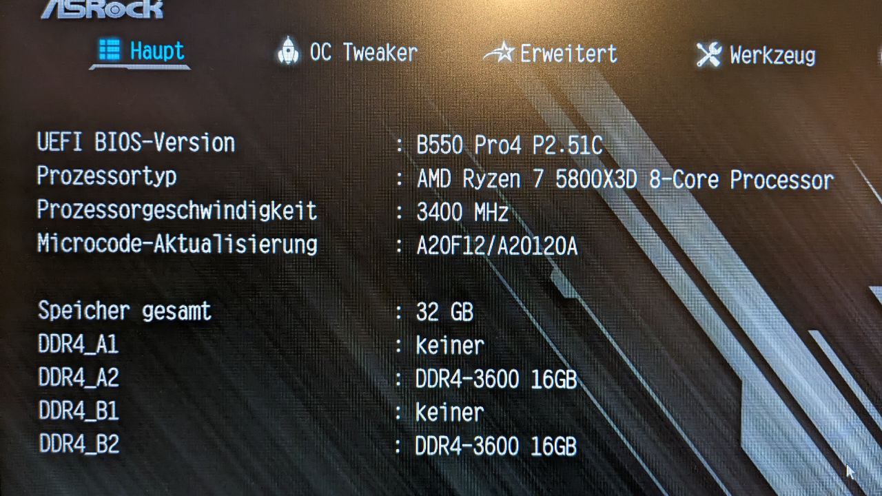 Optional kann man sich den Curve Optimizer über ein altes Profil "zurück mogeln", wenn man vorher einen non-X3D auf dem Board hatte. Ich habe mein altes Profil des 5600X geladen, um meine alten Lüftereinstellungen zu erhalten. Das Brett hat sich durch den CPU-Wechsel(Spielerei, Geldvernichtung) logischerweise zurückgesetz.