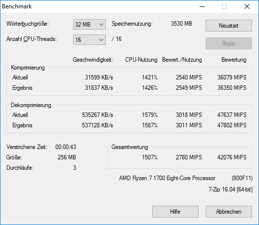 Nach langjaehrig guten Erfahrungen mit Gigabyte Boards ist es bei mir auch diesesmal wieder ein Gigabyte geworden. Eigentlich hatte ich vor mein Node304 Gehaeuse wieder in Betrieb zu nehmen und auf die mITX Boards zu warten. Wir warten ja bekanntlich bis heute. Da das Kribbeln irgendwann zu stark wurde und mITX Boards nicht in Sicht waren hab ich beschlossen das ganze vorerst in ATX zu realisieren. Da ich die Extras des X370 Chipsatz nicht benoetige, der B350 Chipsatz sparsamer und guenstiger ist, habe ich mich fuer letzteren entschieden. Das naechste Kriterium war eine ausreichend dimensionierte Spannungsversorgung. Das Gigabyte AB350 Gaming 3 hat alles was mir wichtig ist und wurde somit die Basis des neuen Systems. Da das System langfristig ITX werden soll, kam als CPU der Ryzen 1700er mit 65W TDP auf die Liste. Bei RAM wurde die Entscheidung etwas schwieriger. Da ich zugegebenermassen etwas RAM fetischistisch bin wollte ich das Sys nicht mit 2400er RAM laufen lassen. 3200MHz sollten es sein. Dumm nur, dass genau dies einer der bislang zickingen Punkte der neuen AM4 Plattform ist. Nach langem ueberlegen hab ich hier in den sauren Apfel gebissen und den doch sehr teuren G.Skill FlareX 3200MHz CL14 gekauft. Dieser ist von G.Skill fuer Ryzen zertifiziert UND ist auf der QVL des AB350. CL16er der ebenfalls auf der QVL steht ist teilweise bis 60 Euro billiger, aber ich wollte hier einfach auf nummer Sicher gehen. Als GraKa kommt bei mir eine XFX RX470 mit 4GB zum Einsatz. Die war vorher schon vorhanden. Das ganze haengt an einem Enermax Triathlor 300W NT. Als Kuehler haengt der boxed Luefter drauf (Spire bis 95W TDP)