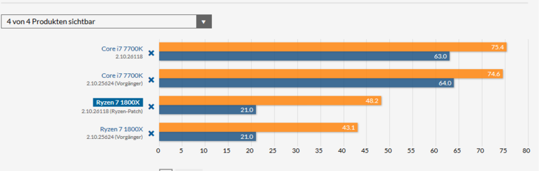 Wie bemerkbar/lohnend macht sich denn die geringe Mehrleistung der aktuellen Intel CPUs in Spielen? Das ist die gleiche (z.T. kindische) Argumentation wie bei der RX 480 vs. GTX 1060 GPU-Lagerdiskussion, wer wohl im neuesten Spiel den leicht (vielleicht 5%) längeren Benchmark-Balken hat. Solange dort die Karten in der gleichen Leistungsklasse (Auflösung und Details) bei annähernd 60 fps liegen, wird kein Mensch einen Unterschied wahr nehmen und kräht danach eigentlich kein Hahn und welchem Käufer reicht die Leistung der (Ry-)Zen CPUs aktuell nicht oder wer hat sich kritisch geäußert, dass ihm mittelfristig diese nicht reichen wird?