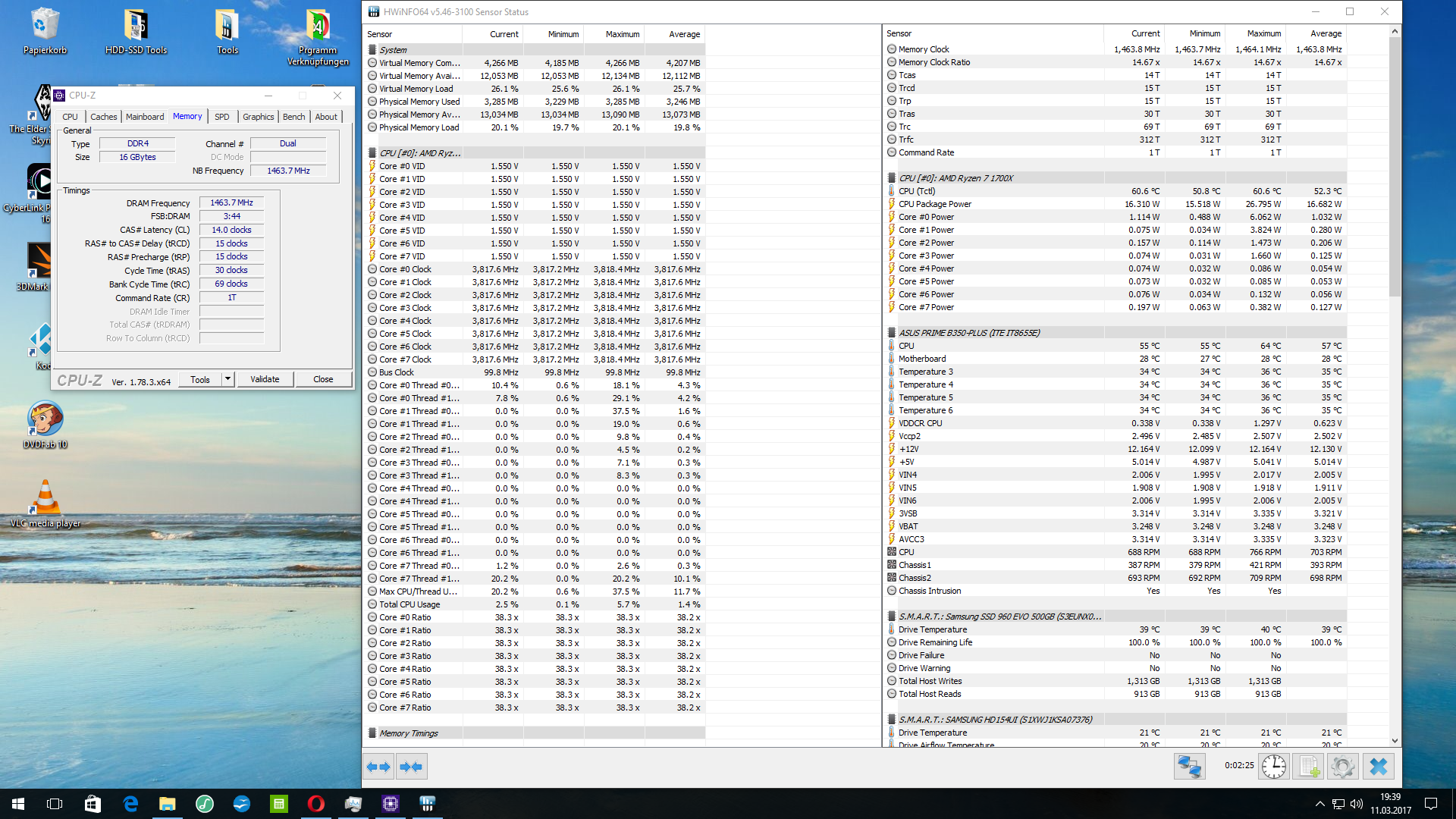 Lüfterbedingt läuft mein Ryzen derzeit auf 3,825 ghz und ist undervolted auf 1,2975 v , zur Zeit das optimum aus Temperatur , Stromverbrauch , Lüfterlautstärke und Leistung ( die Anzeige von HW info auf dem screenshot ist falsch - er läuft nicht mit 1,55v )