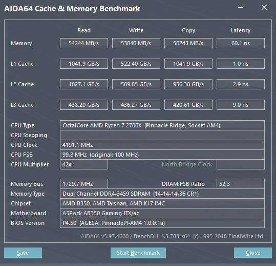 Latenz bewegt sich im abgesichten Modus, mit den Werten weiter oben im Bereich, von 60ns.