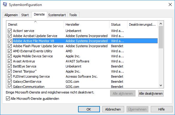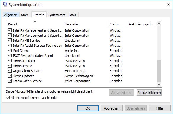 Manche Dienste solcher unerwünschter Software tragen unauffällige Namen wie "Updater". Alle kenne ich auch nicht aber du kannst auch gerne einen Screenshots hochladen von MSCONFIG (Diesnte ohne Microsoftdienste, Startelemente)
