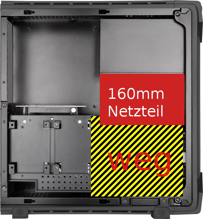 Jetzt hab ich aber den Aufstell-Ort umdisponiert und würde das Ding idealerweise mit den gleichen Komponenten gern auf einem Rollcontainer unter einem eher niedrigen Schreibtisch unterbringen. Es sind in der Höhe nur 135mm Platz. Ich finde ums Verrecken kein Gehäuse, in das ich den Krempel ohne eigene Modifikationen hinein bekomme.