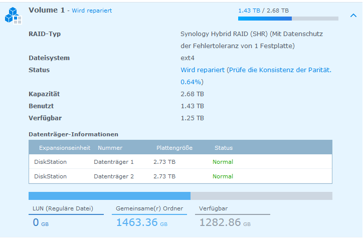 Im Synology NAS habe ich 2 x 3TB Festplatten im RAID Verbund verbaut. Das heisst ich habe nicht 6TB sondern immer noch 3TB Speicher, weil eben eine Festplatte auf der anderen gespiegelt. Einige meinten hier das sei keine gute Lösung, weil Fehler auch gespiegelt werden. Jetzt beim SMART Fehler konnte ich von RAID auch nicht profitieren, ich musste mir eine weitere Festplatte suchen um ein Backup vom ganzen NAS drauf zu erstellen.
