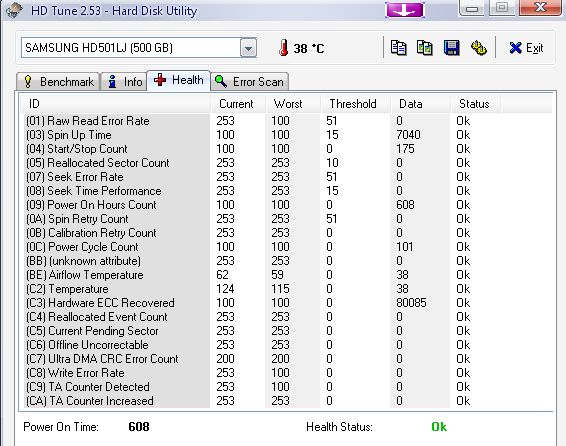 Schaut so aus, als ob mene SATA Festplatte den Geist aufgeben will