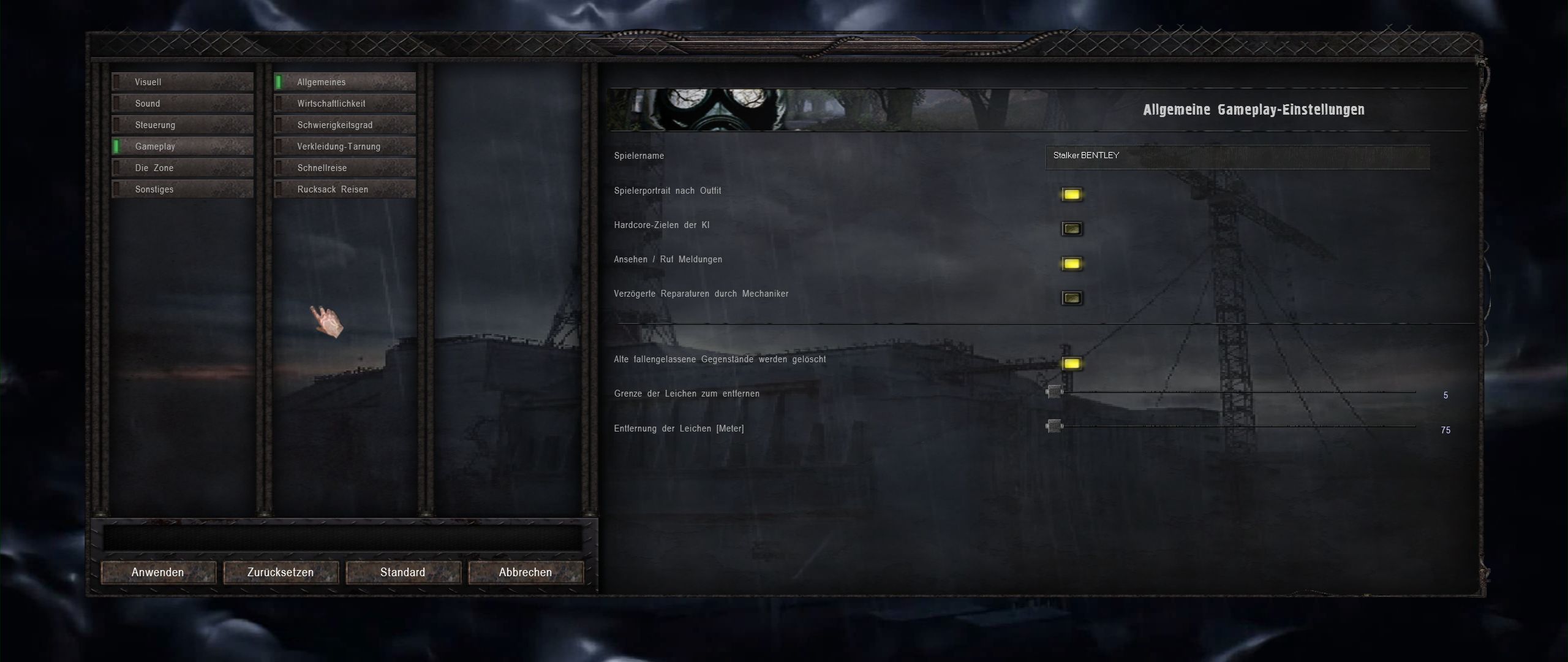 Im Spiel hast Du die Möglichkeit in den "Einstellungen" deinen "Stalker" nach deinem Wunsch zu verändern.