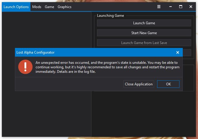 Ich habe vorhin eine frische LADC 1.4007 Installation ohne Mods, mit der Löschanleitung bearbeitet und habe das Komplettpaket darüber kopiert. Das Spiel startete ohne Fehlermeldung aus dem Konfigurator heraus, dieser ist nicht abgestürzt, hat auch die Mods angezeigt und das frische Update für die Version 2.51. Auch der Entwicklermodus über die batch-Datei funktionierte einwandfrei. Ergo kann ich dir nur empfehlen, halte dich an die Anleitung, keine Experimente mit der Installation zwischenzeitlich, auch keinen "Probe" der LADC. Entpacke das Paket in einen Zwischenordner und kopiere den Inhalt dann ins Spielverzeichnis. Wenn du jetzt das Spiel startest, dann funzt das auch.