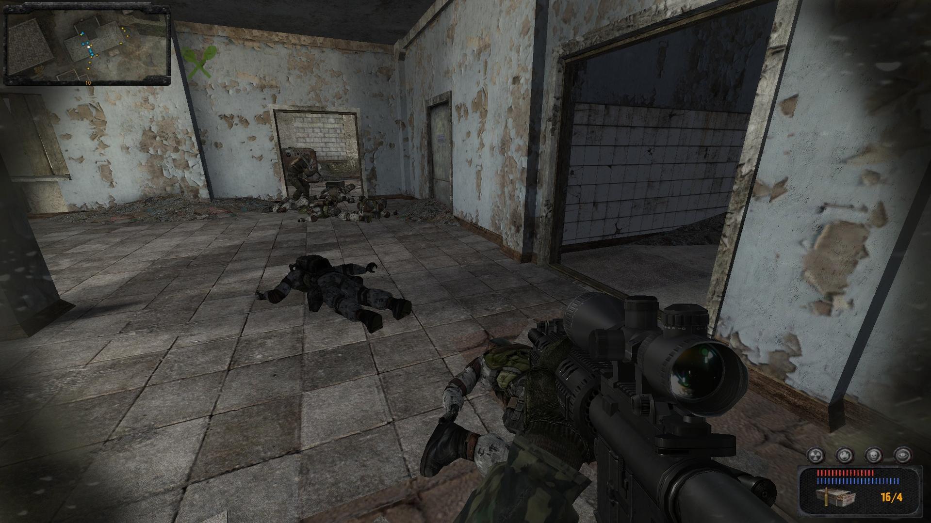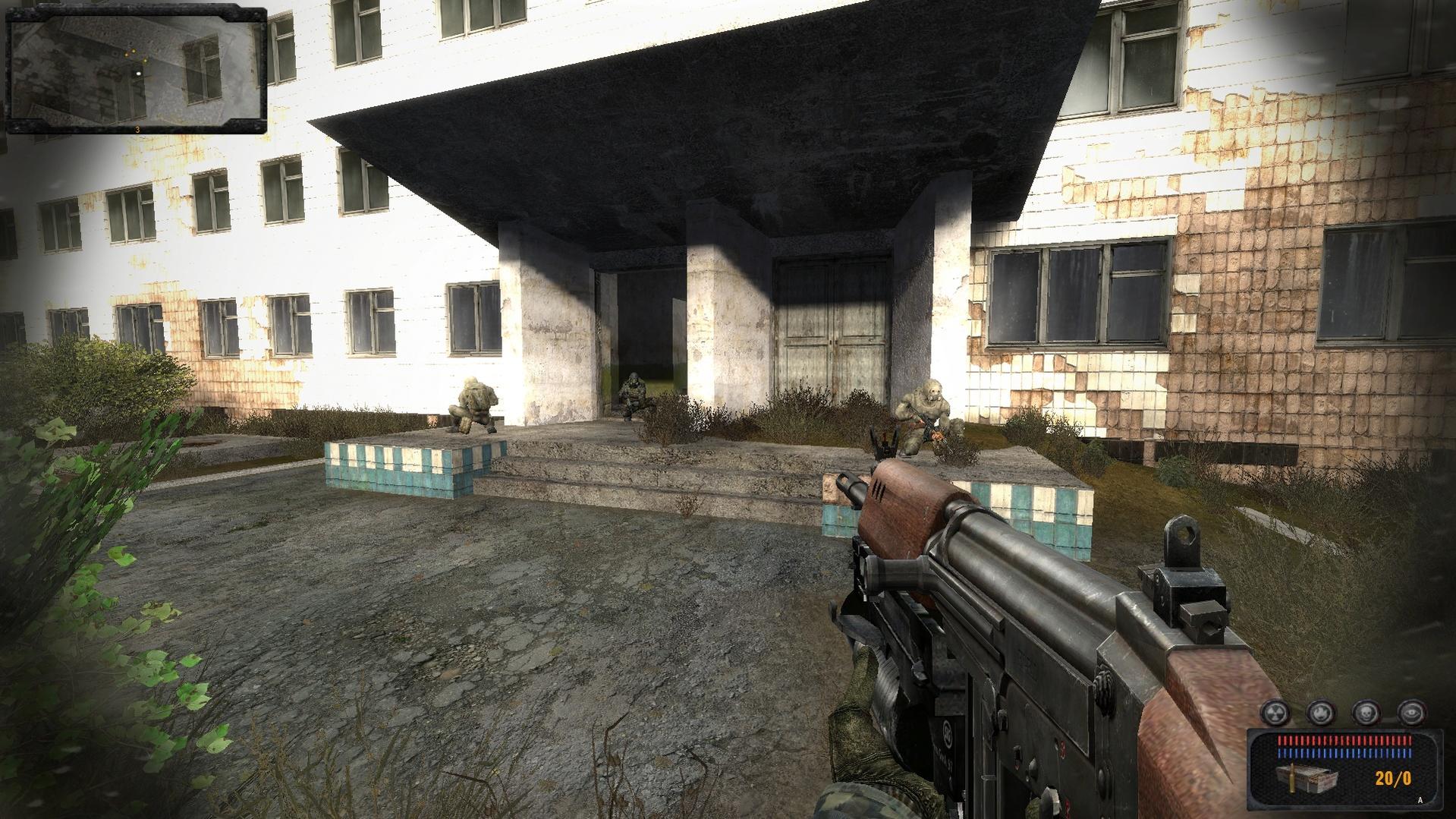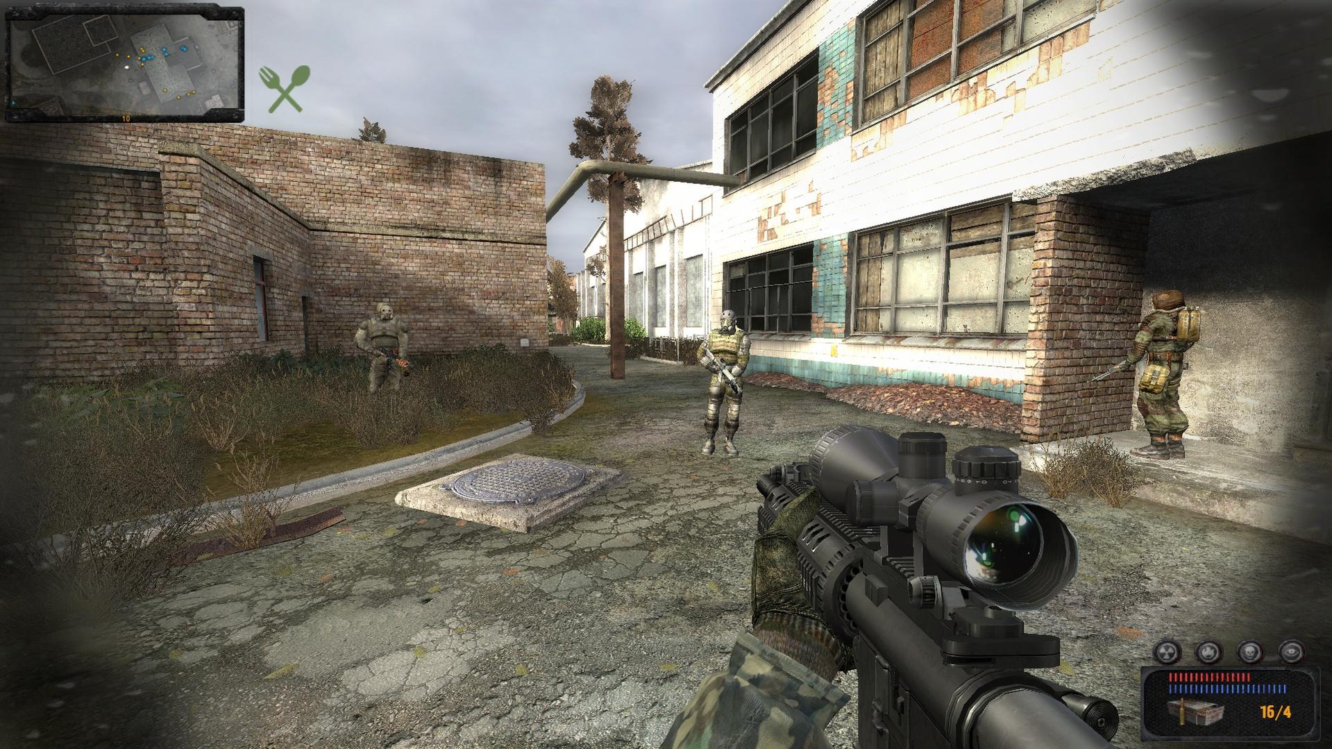 Gerade in Pripyat angekommen und diese kleine Gruppe Stalker entdeckt, die einen Angriff auf einem Monolithaußenposten vorhaben. Ein bisschen zusätzliche Feuerkraft kann nicht Schaden