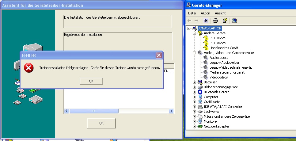 treiber von lenovo seite runtergeladen und probiert zu installieren. ergebnis: "Treiberinstallation fehlgeschlagen: Gerät für diesen Treiber wurde nicht gefunden." (siehe bild)