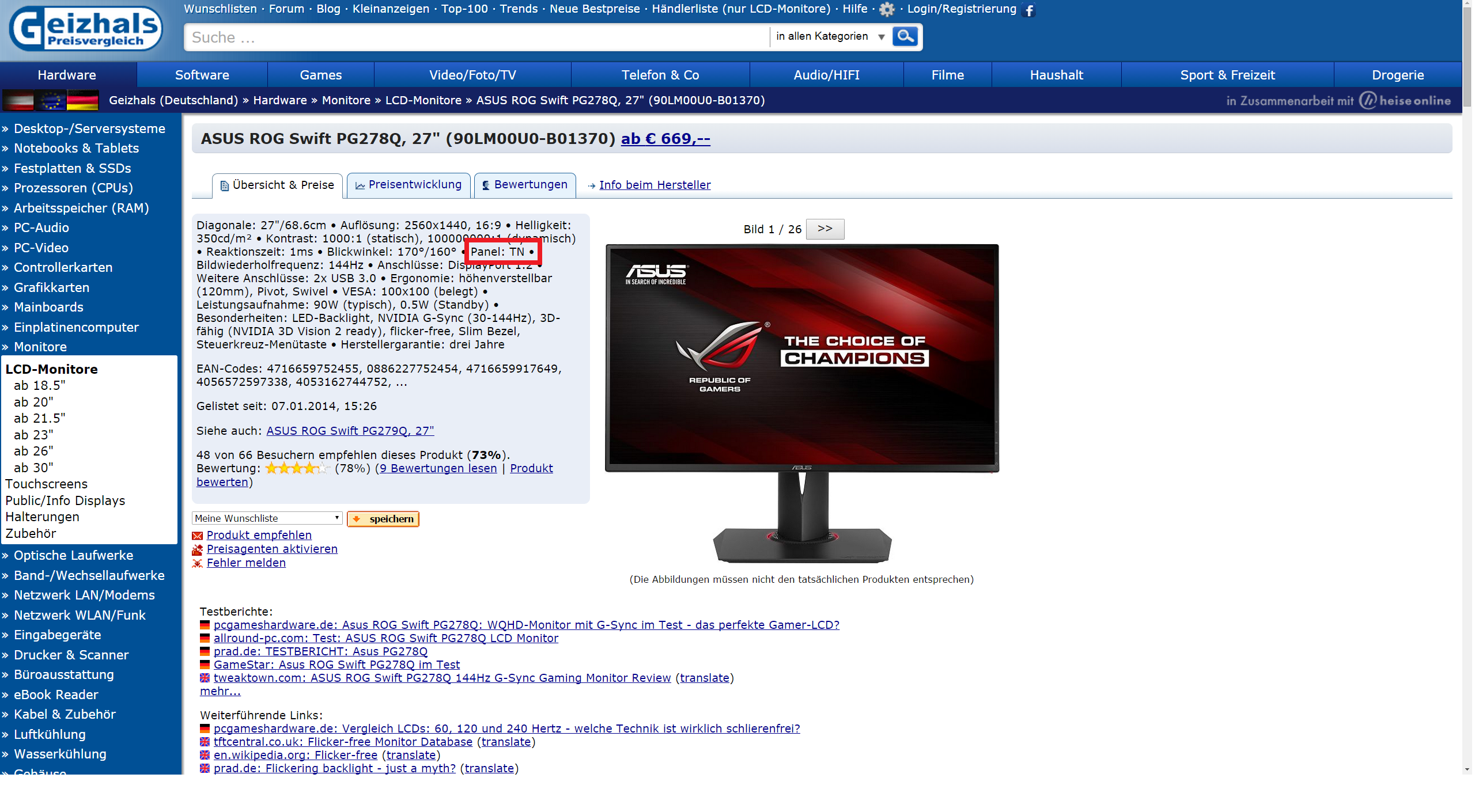 Der genannte ASUS hat ein TN-Panel, wobei es bei diesen Panelen oder besser gesagt bei allen Panelen auch Unterschiede gibt & TN ist auch nicht (immer) TN ...