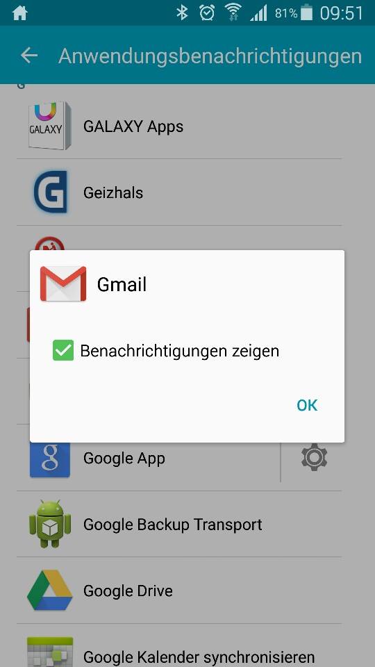 Nun habe ich aber auf meinem S5 jeweils nur die Option, Benachrichtigungen einer App generell anzuzeigen oder auszublenden. Bei der DBT Firmware sieht es hingegen aus, wie es soll (siehe die 2 Screenshots DBT vs. AUT).