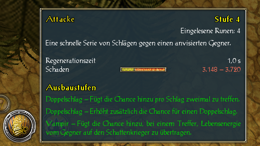 Hatte mich zuerst gefreut, da die Reg Zeit durch ihn angeblich um 33,3% gesenkt werden sollte, doch wie Wolfenstein 2k2 bereits erklärt hat, steigt die Reg Zeit erstmal um 50%. Man könnte dem Problem theoretisch mit "Reiten" entgegenwirken, aber den letzten Fertigkeitsslot brauch ich für "Konstitution".