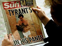 Nun ist das Kloakenlblatt "The Sun" gestern mit einer Titelseite erschienen, die den Ex Diktator und einen der grausamsten Vebrecher der letzten Jahre in Unterhosen zeit.