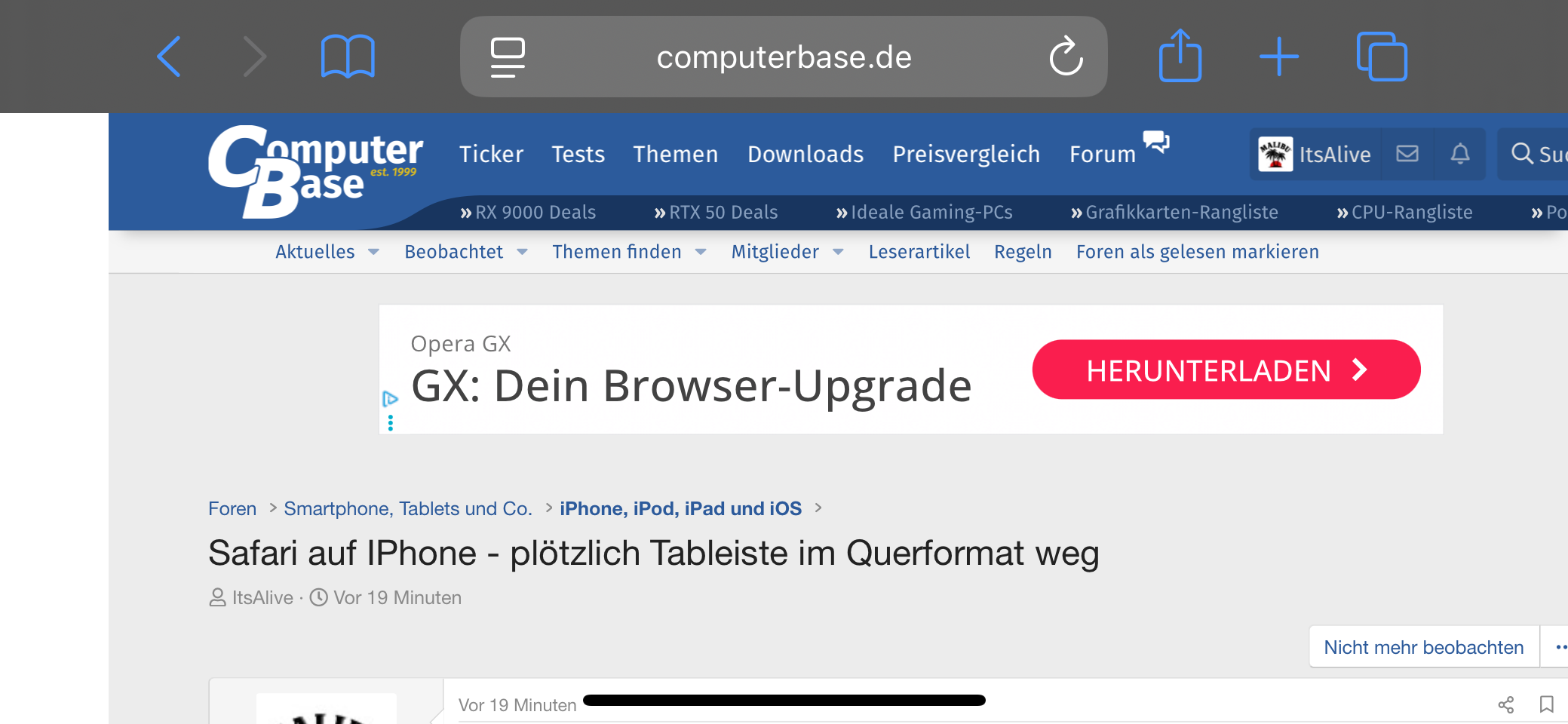 Komme von Android und Opera, weshalb mir wahscheinlich beim IPhone noch etwas die Intuition für das System fehlt.