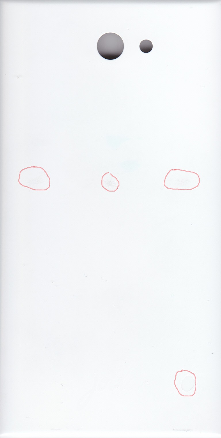 Ich habe mal mein TOH eingescannt, ihr könnt ja mal sehen was ich meine. Zum besseren Erkennen zoomt rein dann sieht man es etwas. Die oberen drei Stellen sind wie so kleine Risse und unten, wo die Farbe abgeblättert ist, war auch zuvor solche Risse wie oben.