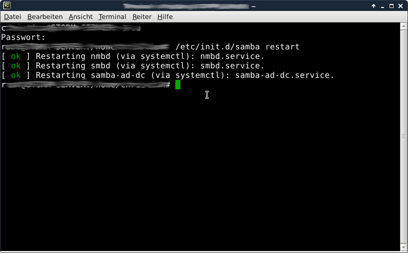 Dabei wurde jedes Mal eine neue smb.conf angelegt, das alte Verzeichnis gelöscht und ein neues erstellt.