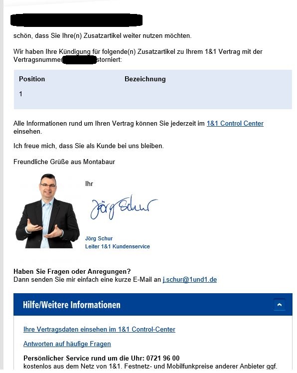 Ich habe in der Vergangenheit unter der Adresse support@1und1.de schnell Hilfe gefunden. Diesmal wurde ich per Standard-Mail zu zum Anruf der Hotline animiert, wo ich wiederum vergeblich an die Reklamationsabteilung weitergeleitet wurde, so dass mir ein Rückruf angekündigt wurde, die Nummer hatte ich hinterlegt.