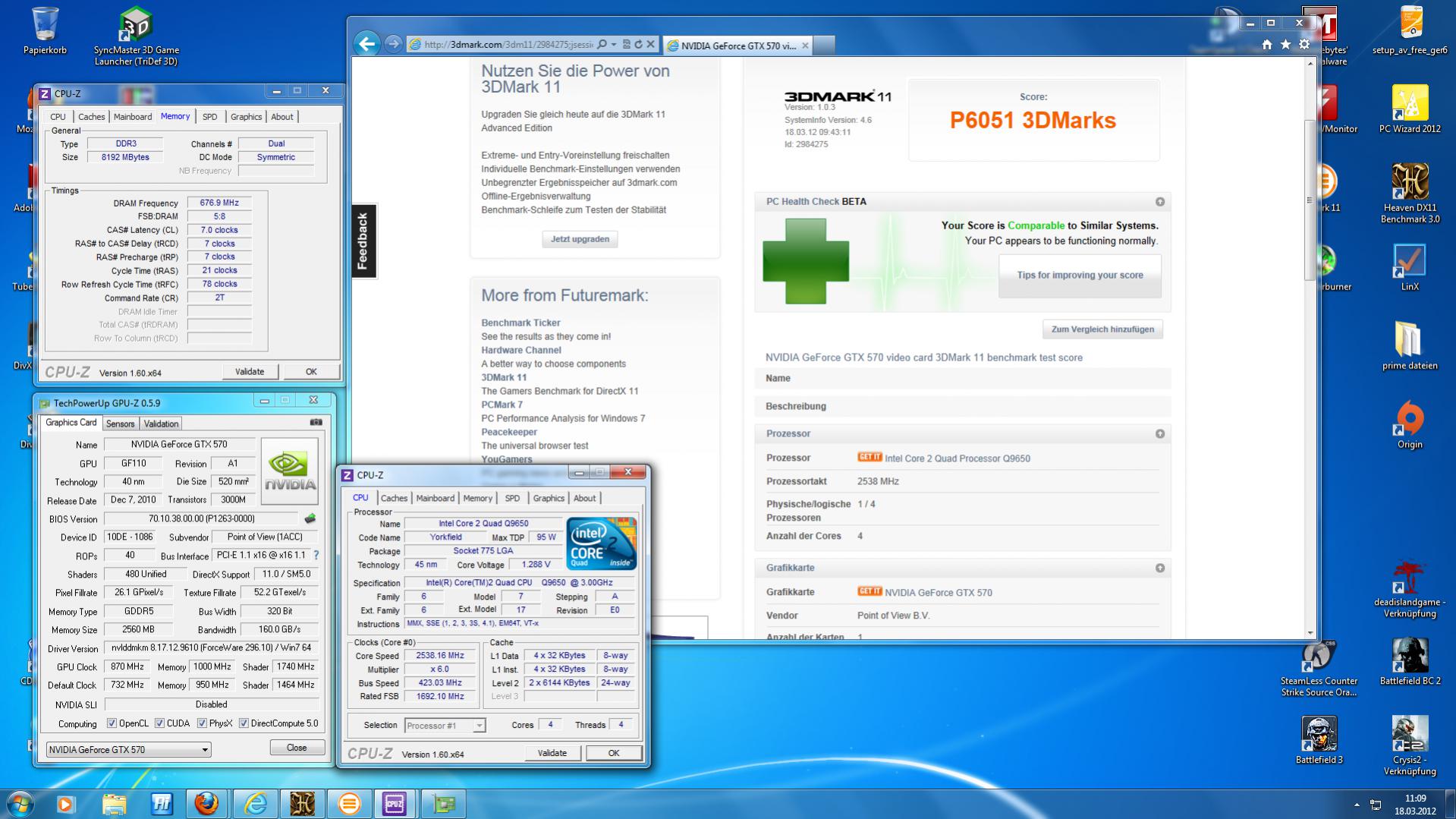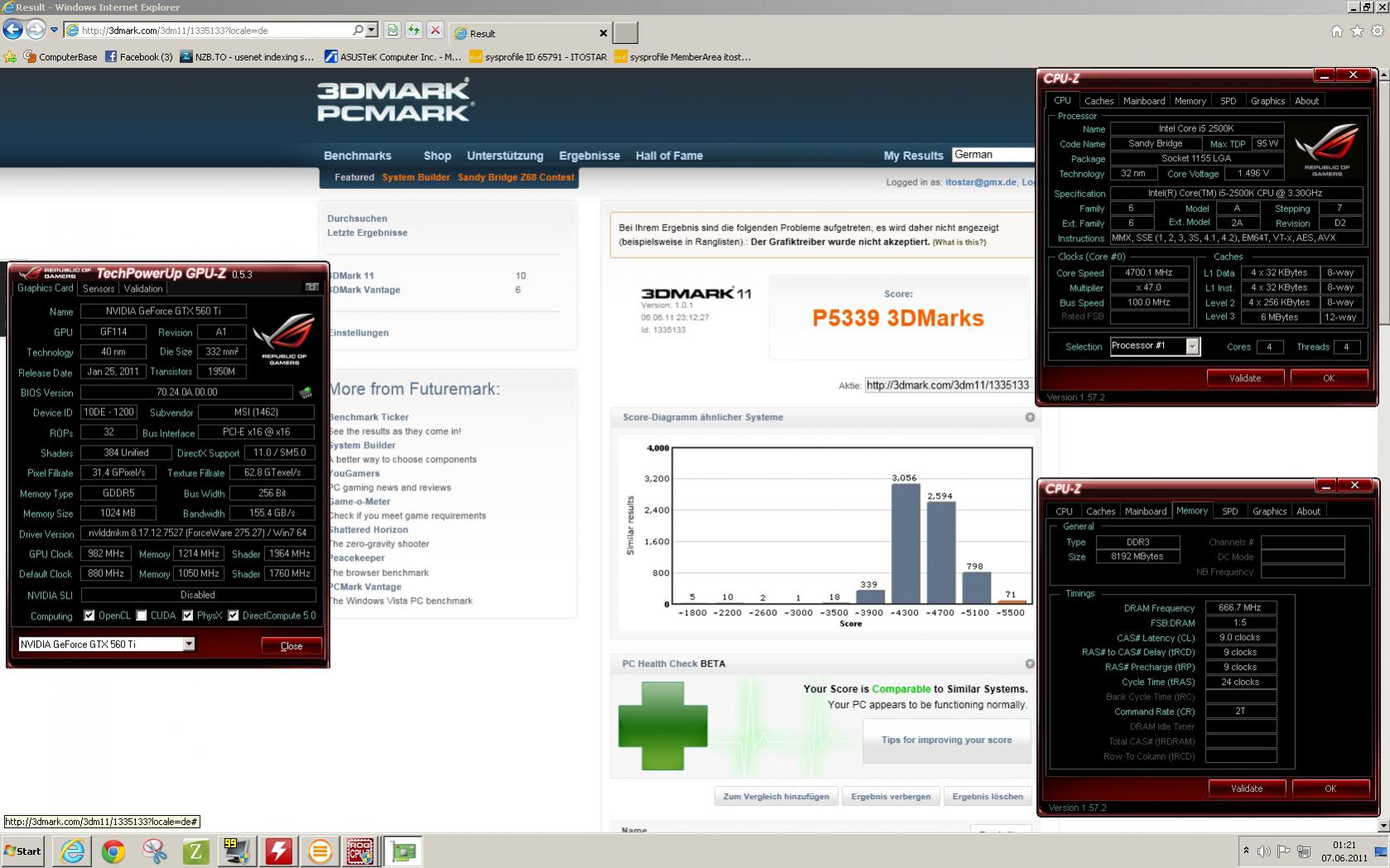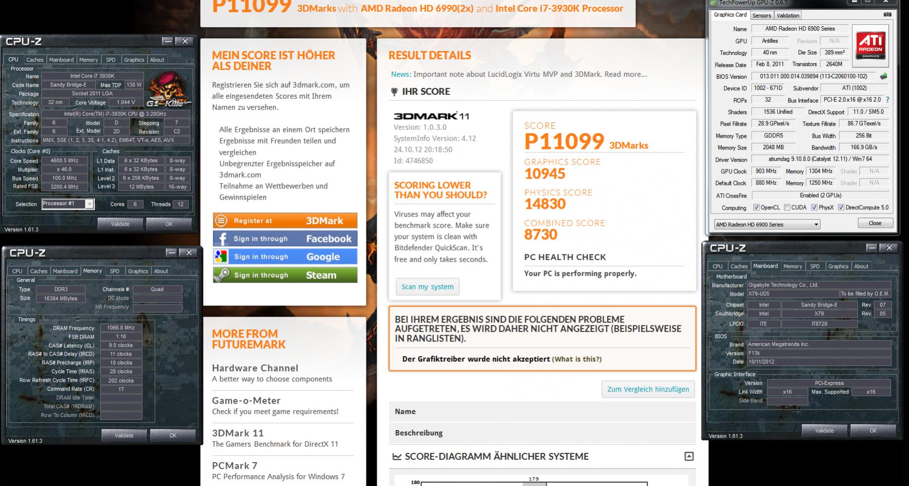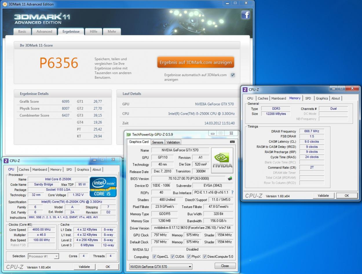 Habe vor Kurzem meinen RAM von 4GB auf 8GB aufgestockt -> 3DMark 11 durchlaufen lassen, kein Punktezuwachs. OK, hat mich noch nicht weiter verwundert weil ich das auch schon von anderen hörte das man dadurch nicht mehr Punkte bekommt. Dann hab ich mal wieder meine CPU von 3GHz auf 3,3GHz hochgetaktet und komischerweise erreichte ich dadurch nur einen minimalen Punktezuwachs von 20-30 Punkten. Müsste das nicht mehr sein? Die einzelnen Physik-Tests hatten schon deutlich mehr Punkte als vorher aber der combined-score war nur minimal höher als vorher. Hat sich eventuell in der Berechnung der Punkte was geändert seit dem letzten Update?