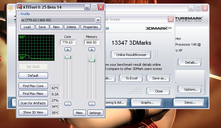 X850XT @ 580/591 GPU @ 37°C (580/610 bringt kein bischen was,also kann ich den Speicher auch schonen)