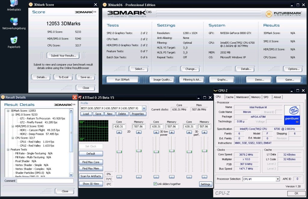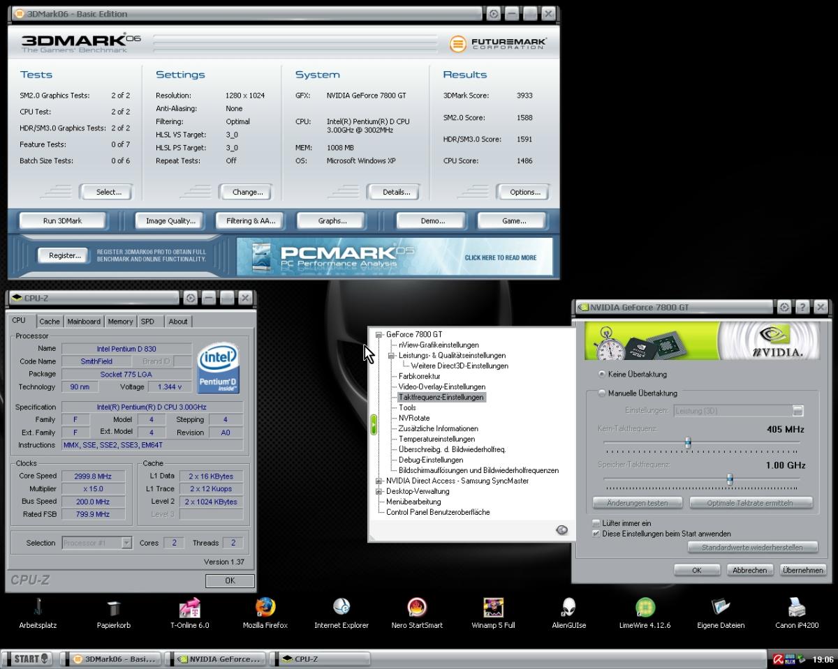 GPU: GeForce 7800GT 256 MB, Kern - Tak 405MHz, Speicher - Tak 1000MHz ForceWare 91.47