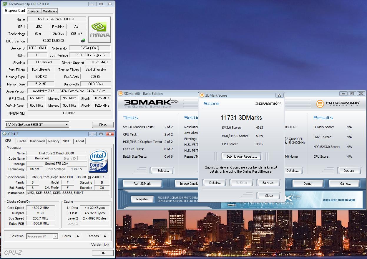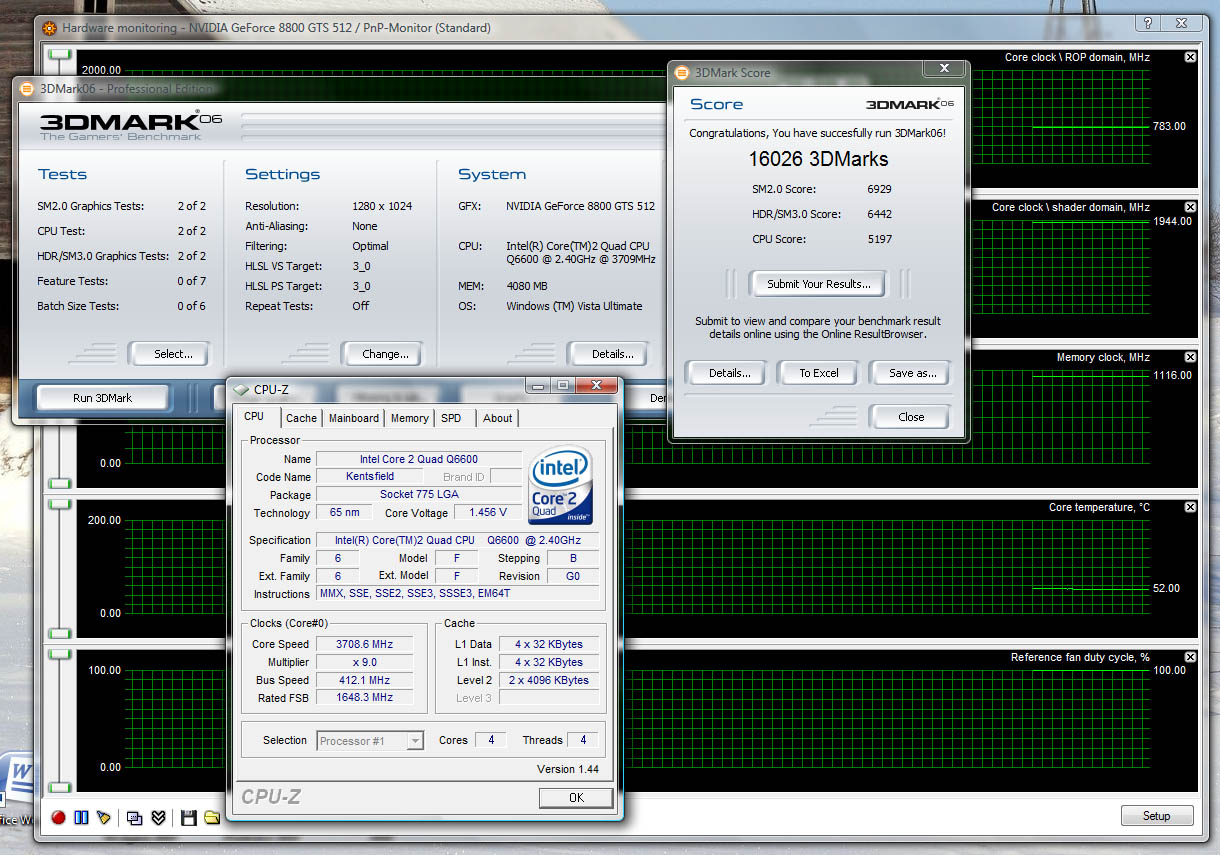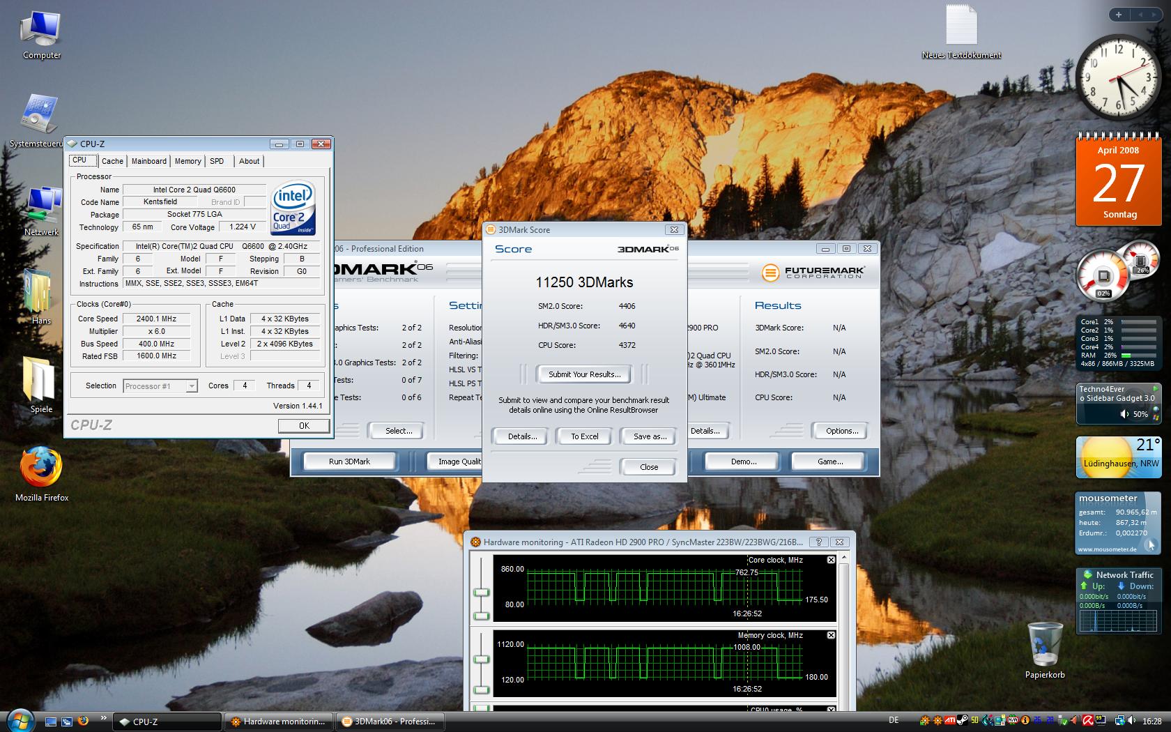 Nachdem ich mein Betriebssystem herabgeworfen habe damit ich wieder WinXP "UND" WinVista64 gleichzeitig darauf habe, habe ich anschliessend eine erneute Benchmark gemacht mit noch etwas erhöhter Takt der GraKa.