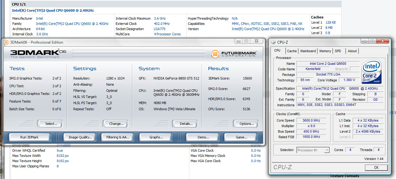 Intel Core 2 Quad Q6600 G0 @ 3.6GHz (1.6GHz FSB)