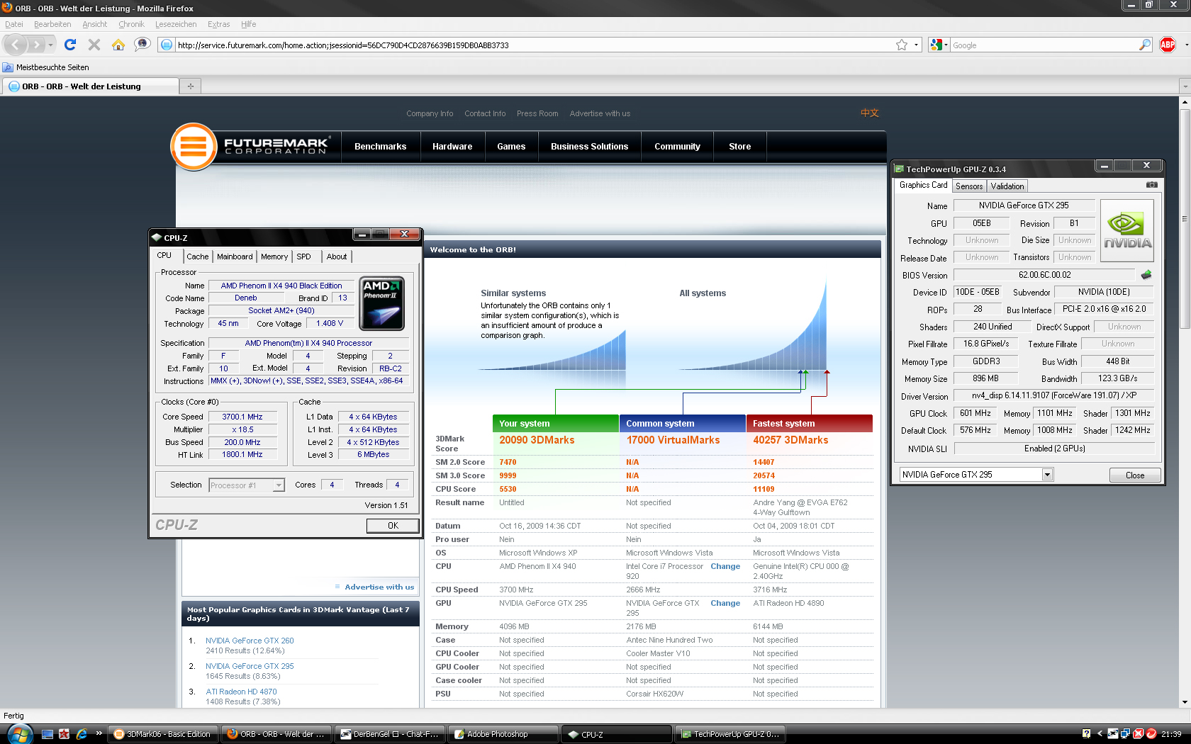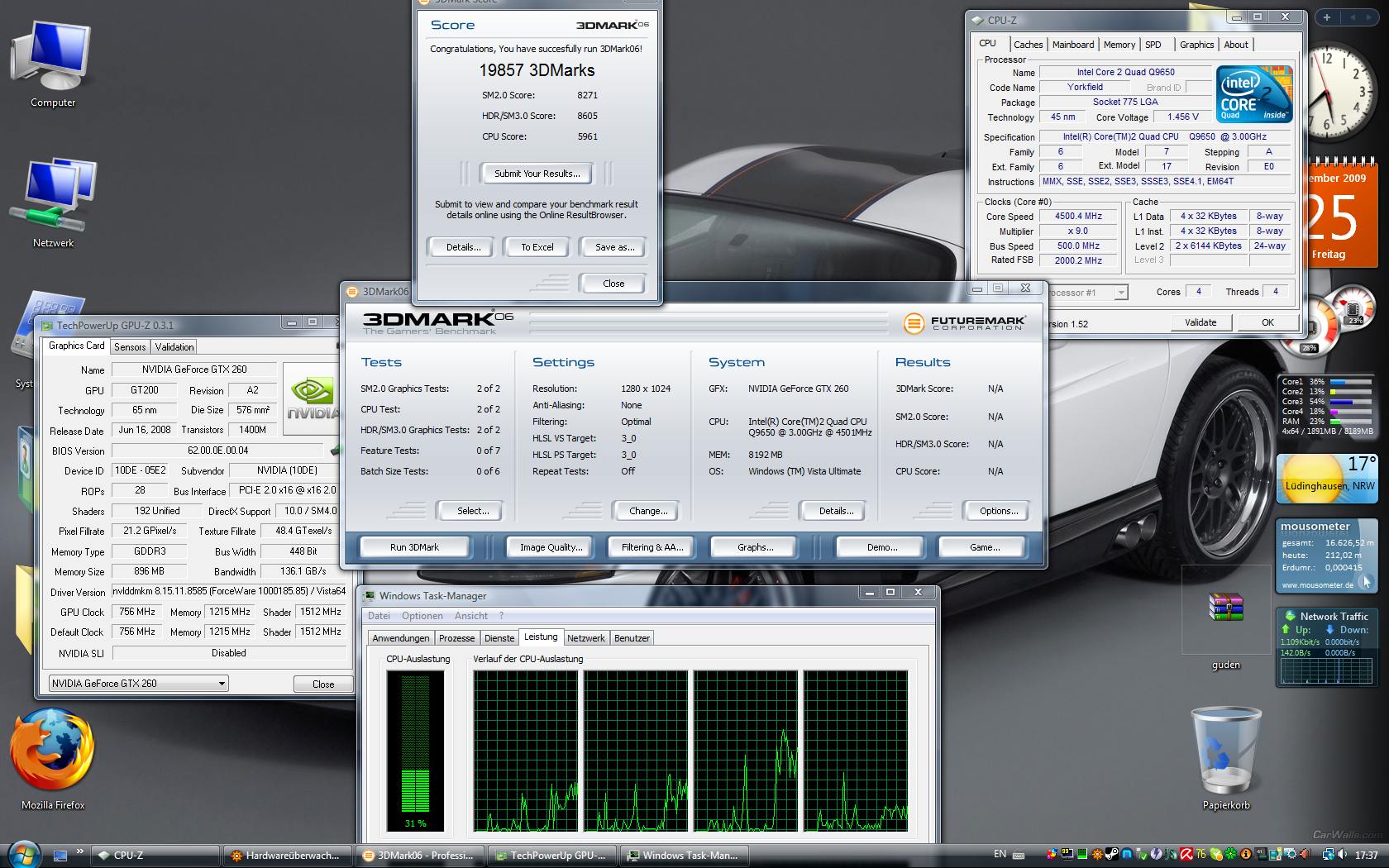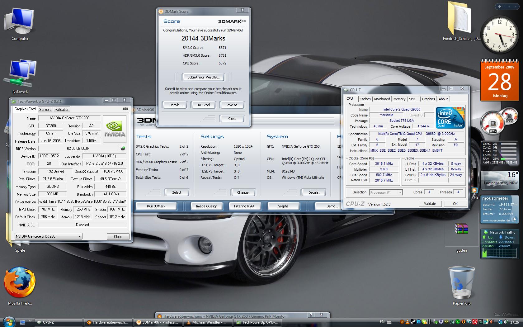 VGA: Gtx260 (192) @702 core clock / 1404 shader / 1200 memory @ 185.85