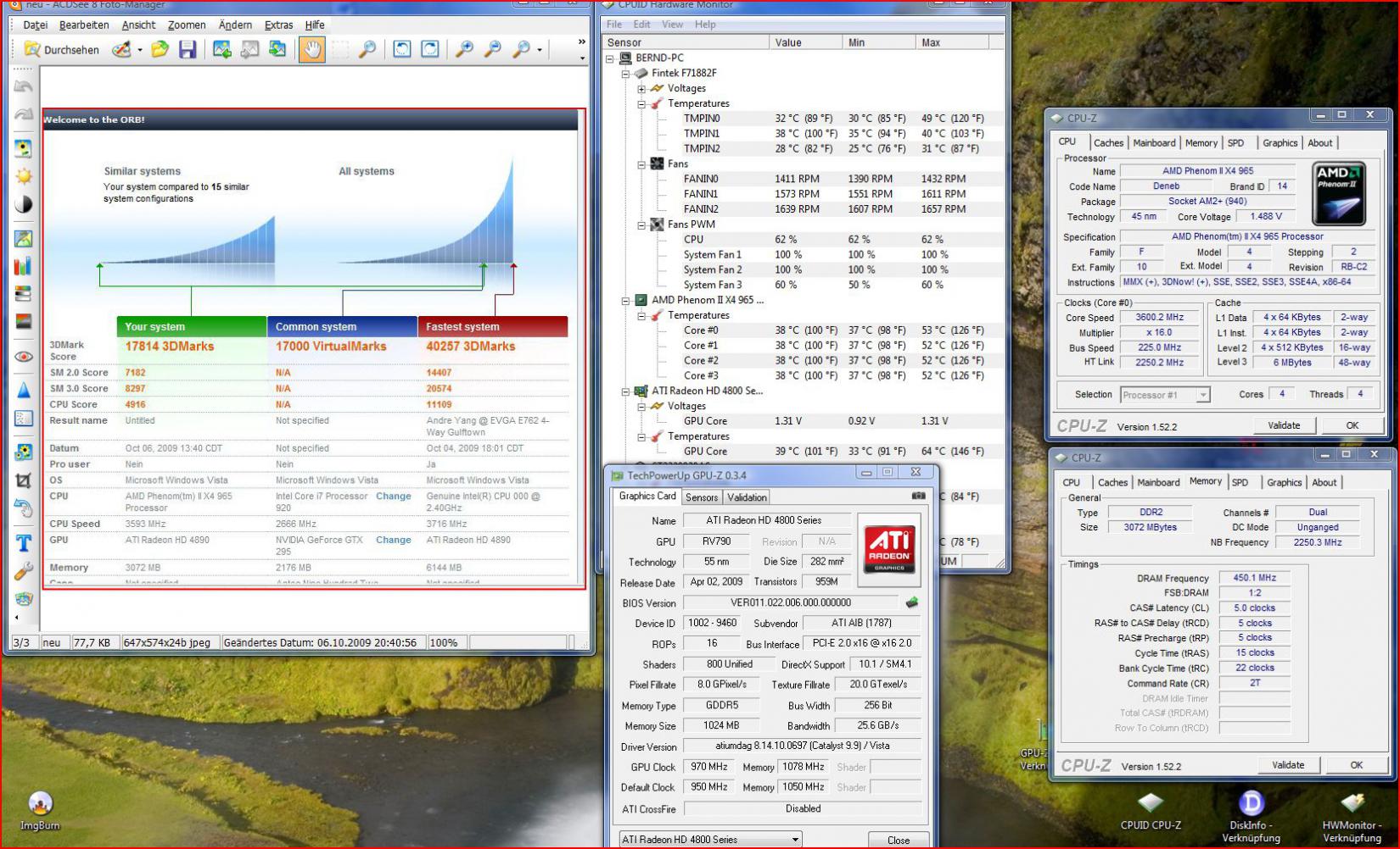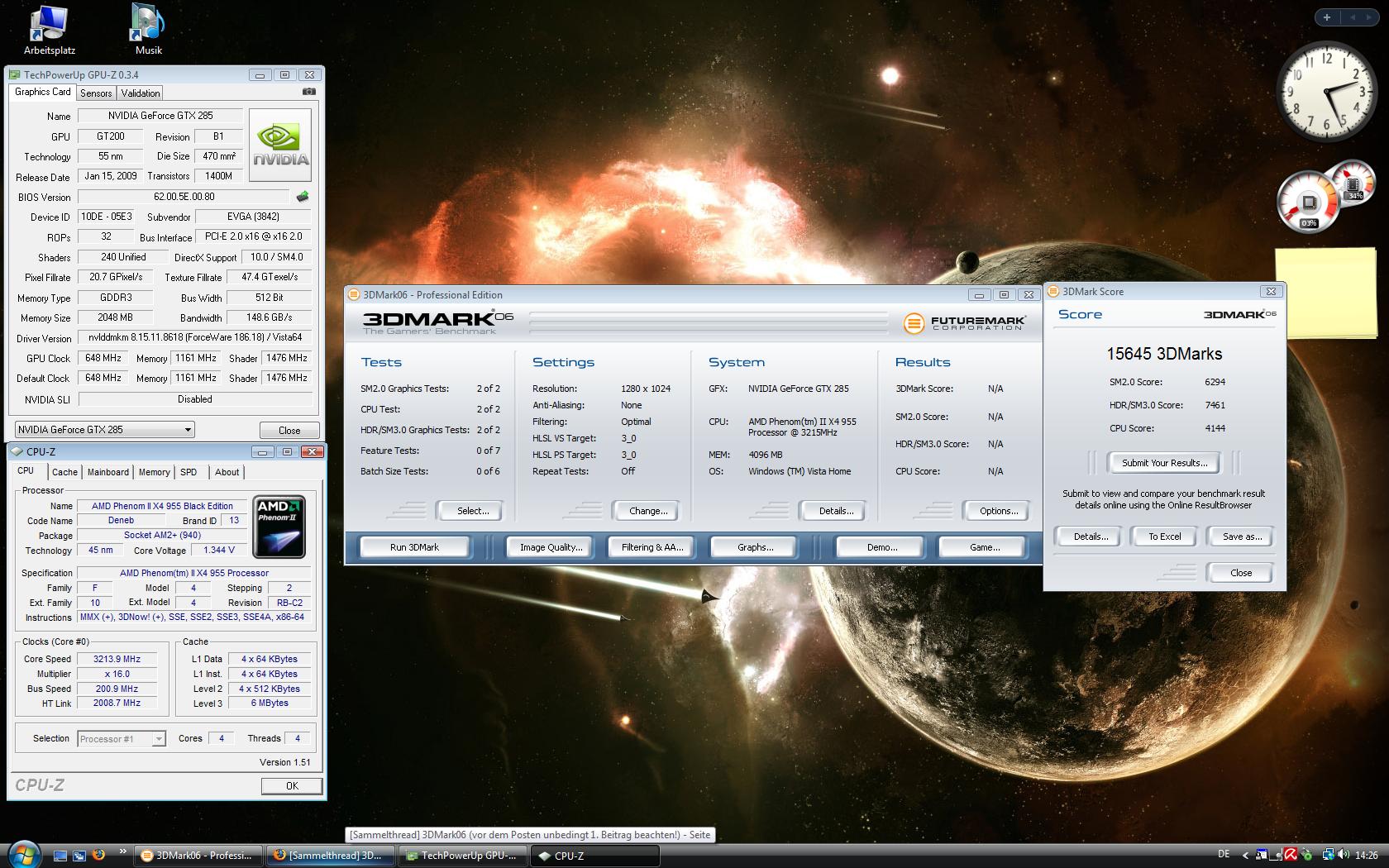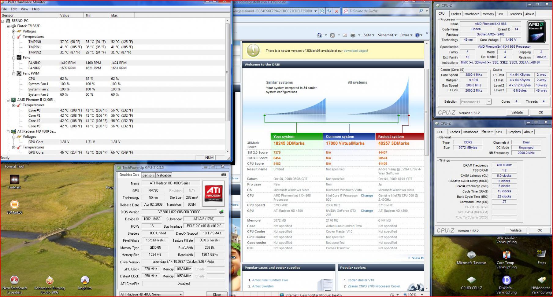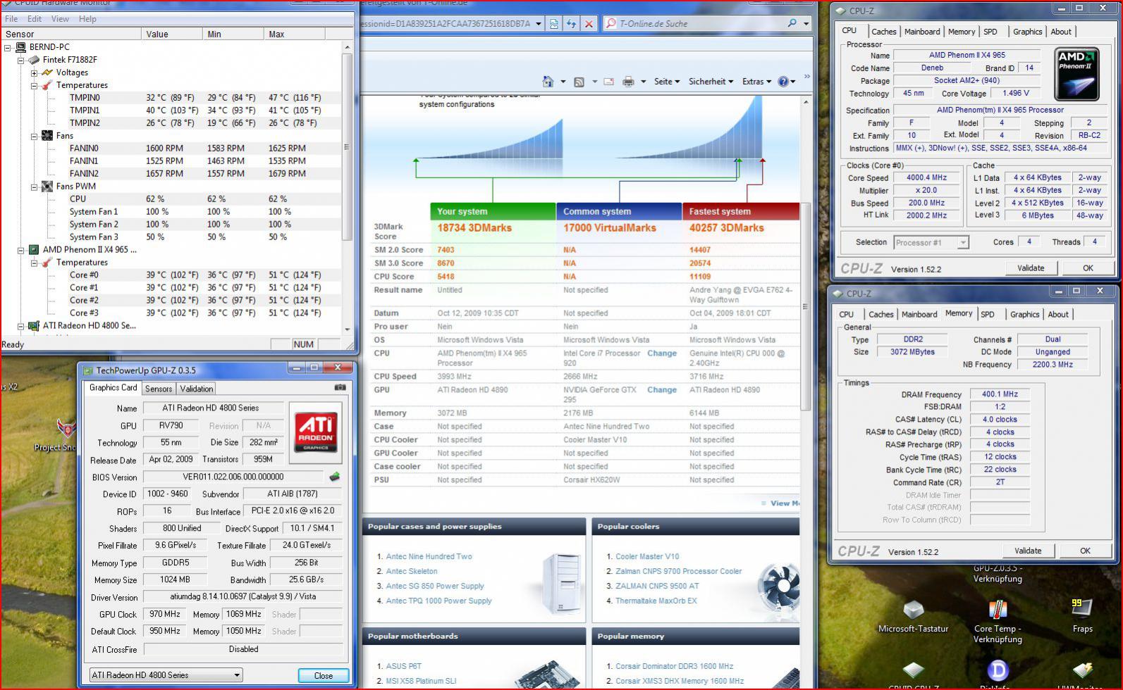 CPU: Intel Core 2 Quad 9550 @ 3,6 Ghz @ 1,248V @ Xigmatek S1284C Achilles