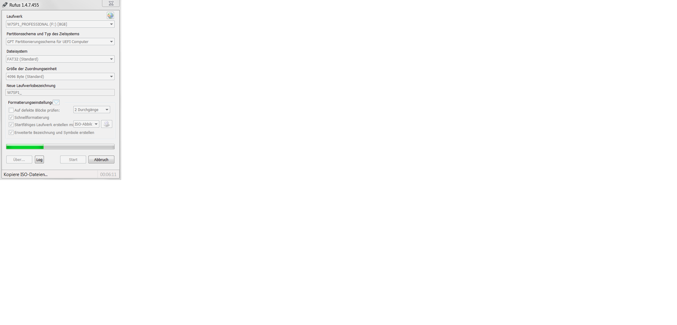 Dann habe ich mit Rufus meinen USB Stick formatiert. Im Uefi Mode wie hier schon beschrieben.